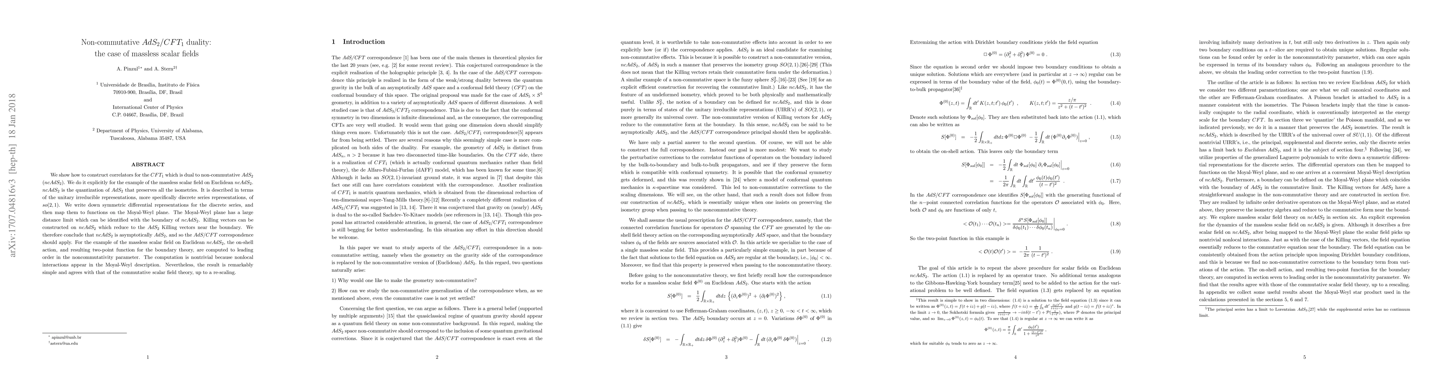 This paper constructs correlators for the $CFT_1$ dual to non-commutative $AdS_2$ ($ncAdS_2$), focusing on massless scalar fields. It demonstrates that $ncAdS_2$ asymptotically behaves like $AdS_2$, allowing the $AdS/CFT$ correspondence to apply, and computes the two-point function for the boundary theory, showing agreement with commutative scalar field theory results.