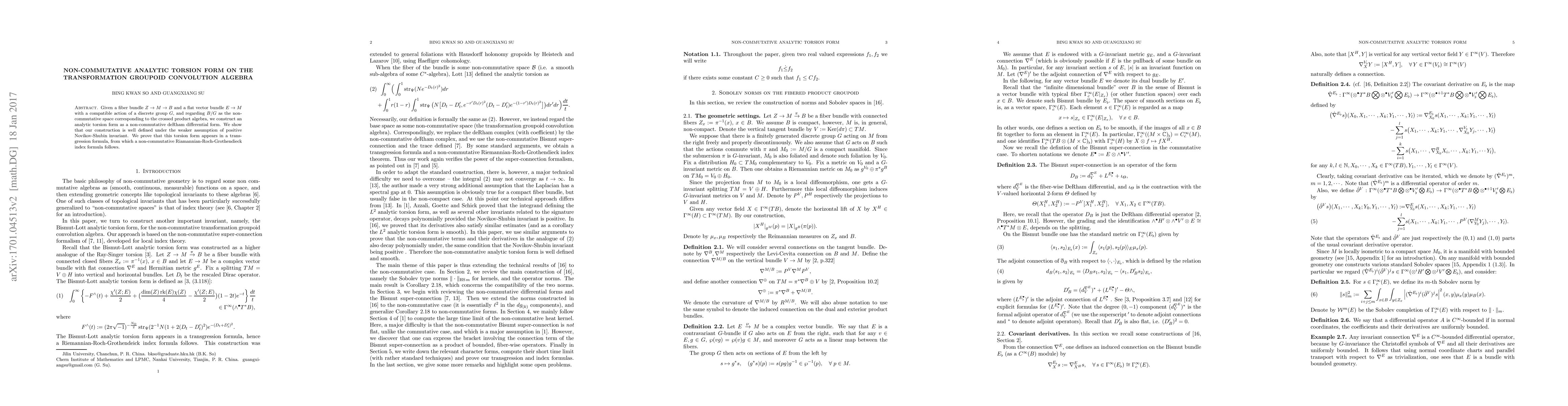 This paper constructs an analytic torsion form on a transformation groupoid's convolution algebra for a fiber bundle with a flat vector bundle and a compatible discrete group action. It demonstrates the form's well-definedness under a positive Novikov-Shubin invariant and derives a non-commutative Riemannian-Roch-Grothendieck index formula from a transgression formula.
