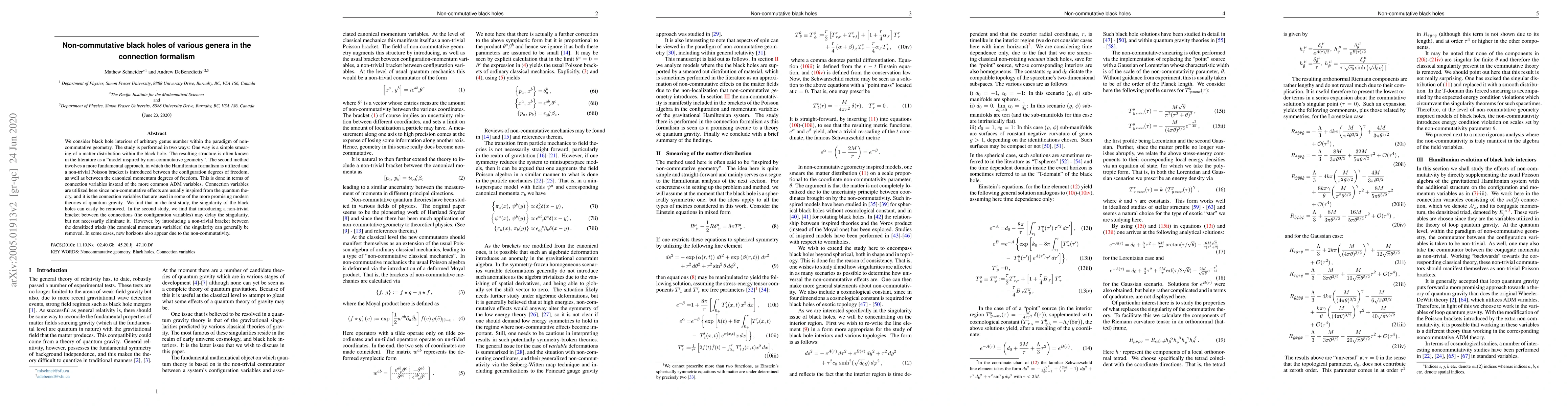 Researchers explored non-commutative black holes of various genera in connection formalism, finding that introducing a non-trivial bracket between canonical momentum variables can remove singularities, while new horizons may appear due to non-commutativity.