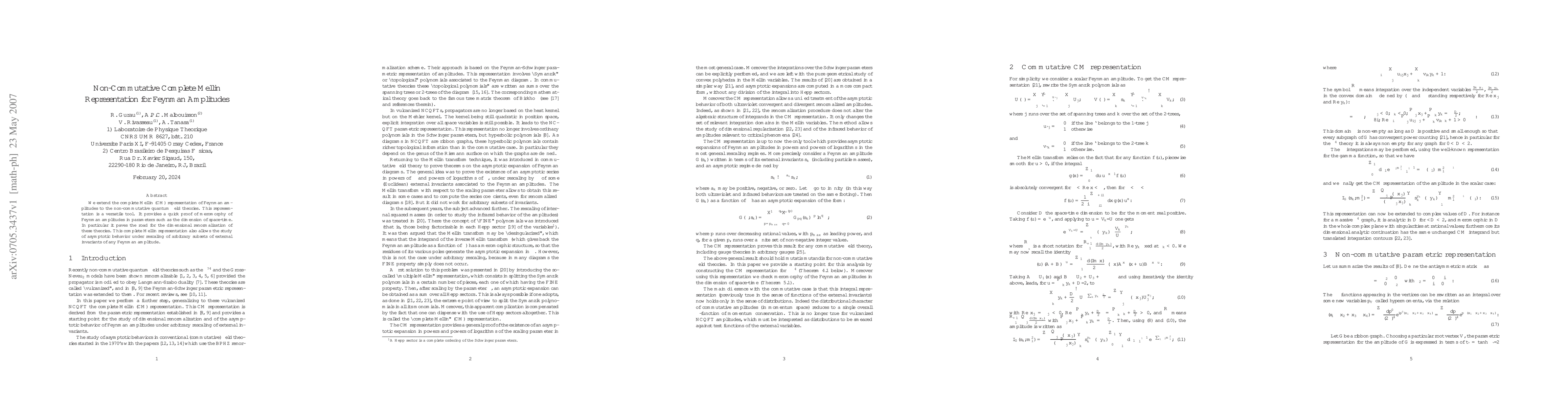 This research extends the complete Mellin representation to non-commutative quantum field theories, providing a tool for proving meromorphy of Feynman amplitudes and enabling dimensional renormalization. It also facilitates the study of asymptotic behavior under rescaling of external invariants in Feynman amplitudes.