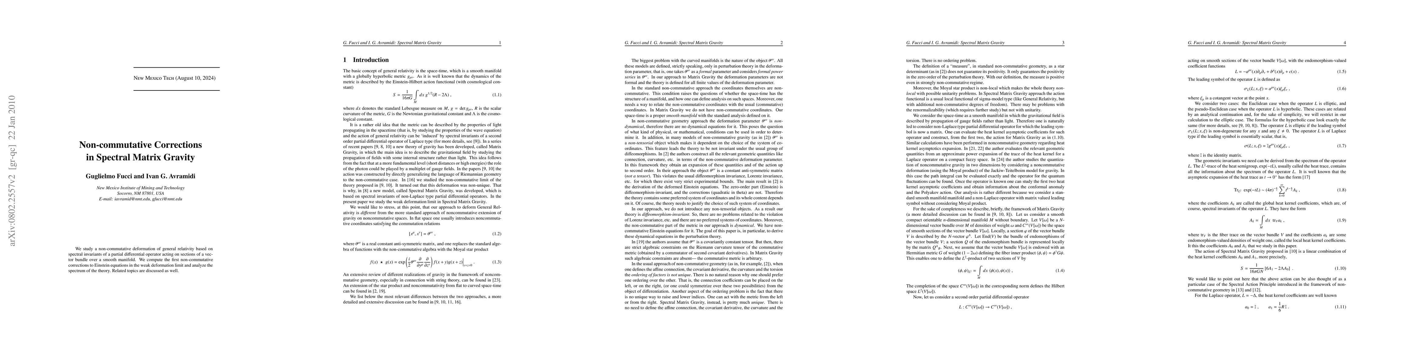 We study a non-commutative deformation of general relativity based on spectral invariants of a partial differential operator acting on sections of a vector bundle over a smooth manifold. We compute the first non-commutative corrections to Einstein equations in the weak deformation limit and analyze the spectrum of the theory. Related topics are discussed as well.