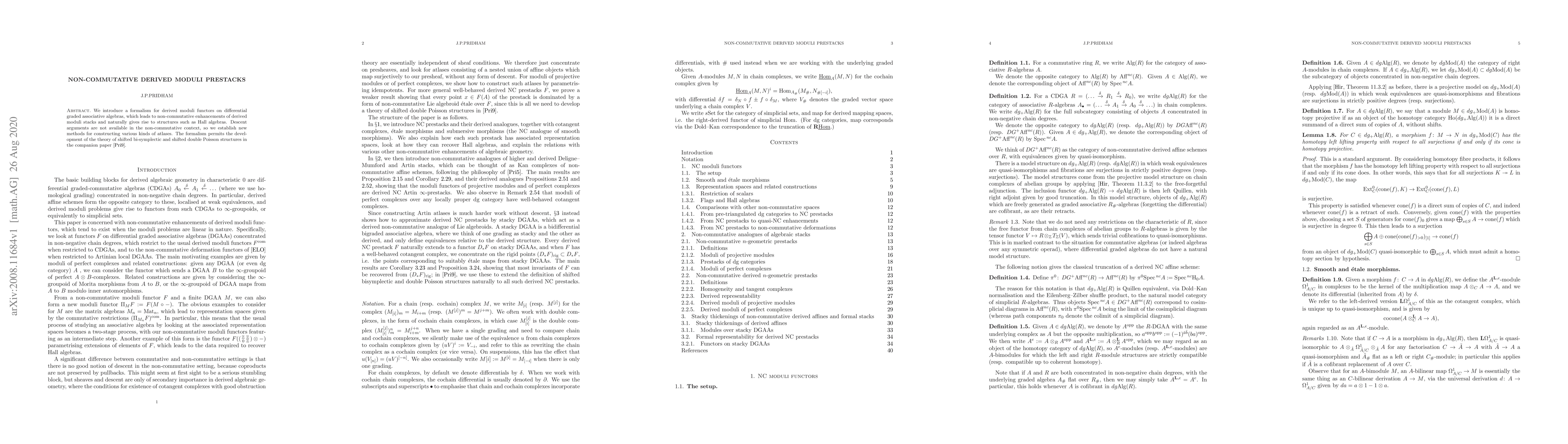 This paper introduces a formalism for derived moduli functors on differential graded associative algebras, leading to non-commutative enhancements of derived moduli stacks and structures like Hall algebras. It develops new methods for constructing atlases in the absence of descent arguments, paving the way for further study of shifted bi-symplectic and double Poisson structures.