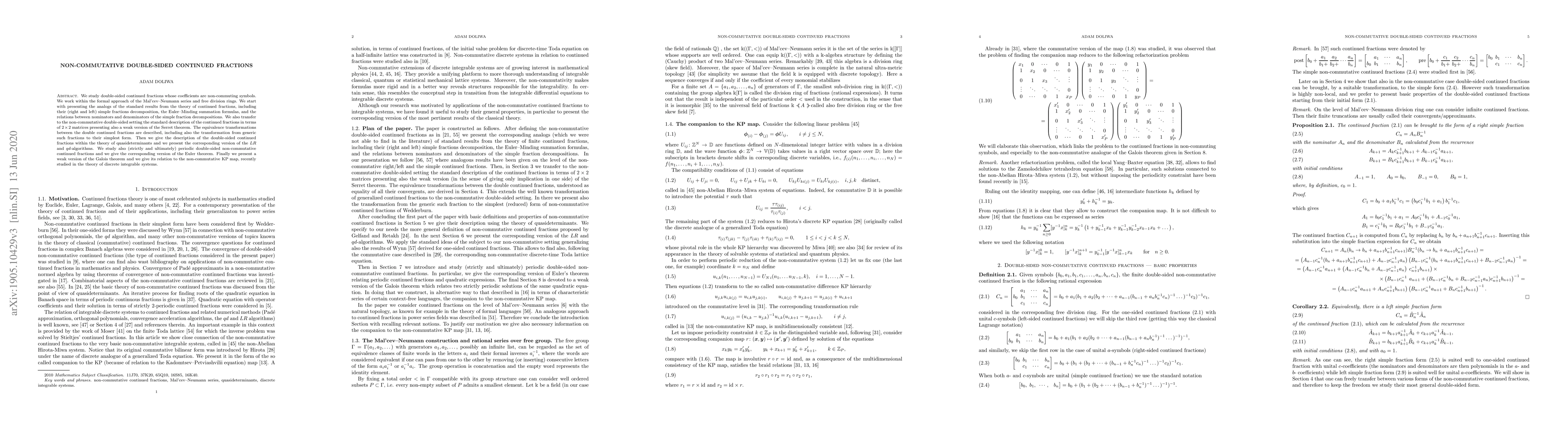 This paper explores non-commutative double-sided continued fractions using Mal'cev-Neumann series and free division rings, presenting analogs of classical continued fraction results and extending them to a non-commutative context. It also discusses the quasideterminant theory, periodic forms, and connections to the non-commutative KP map.