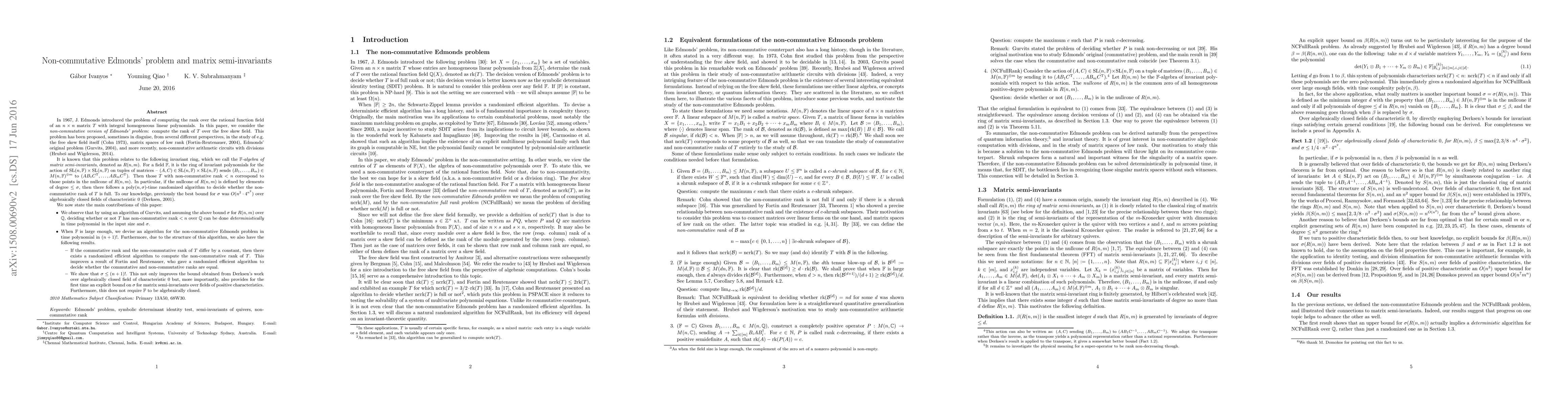 In 1967, Edmonds introduced the problem of computing the rank over the