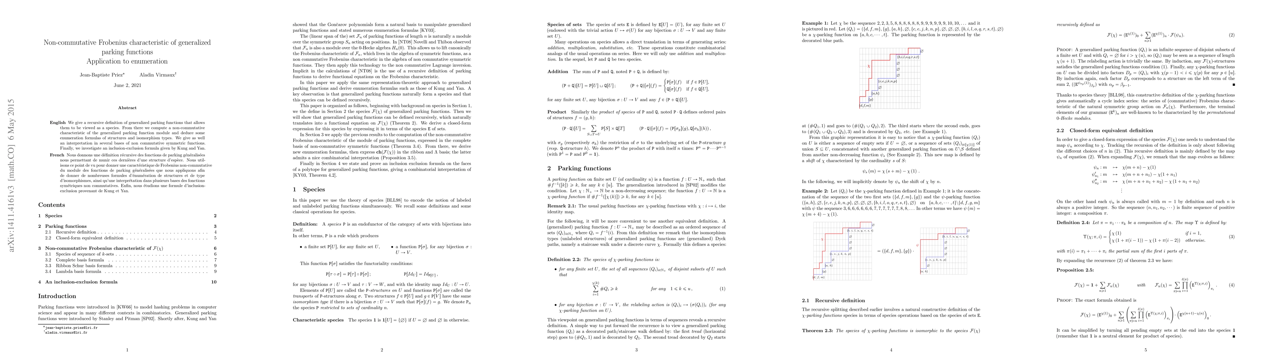 This paper defines generalized parking functions recursively and uses non-commutative symmetric functions to compute their characteristic, leading to enumeration formulas. It also explores an inclusion-exclusion formula and interprets results in various bases.