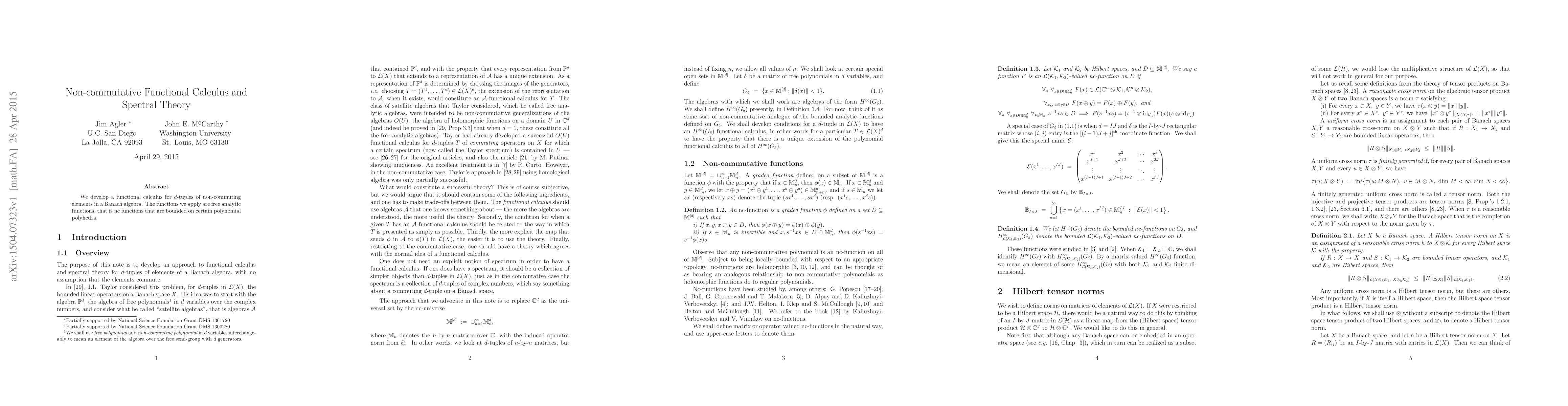 We develop a functional calculus for $d$-tuples of non-commuting elements in a Banach algebra. The functions we apply are free analytic functions, that is nc functions that are bounded on certain polynomial polyhedra.