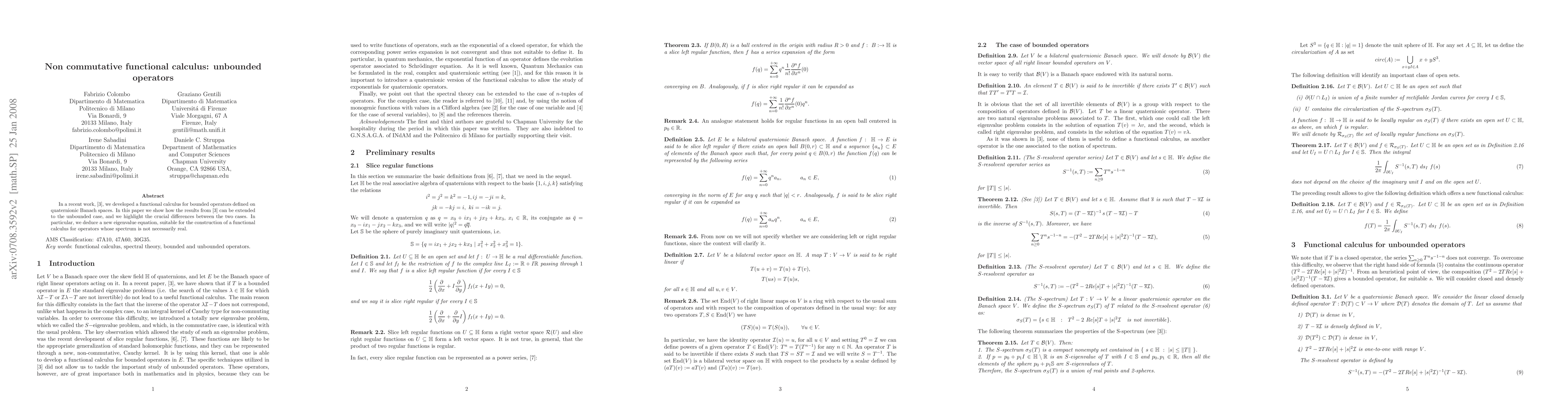 Summary: This paper extends the functional calculus developed for bounded operators on quaternionic Banach spaces to unbounded operators, highlighting key differences and introducing a new eigenvalue equation for constructing a calculus for operators with non-real spectra.