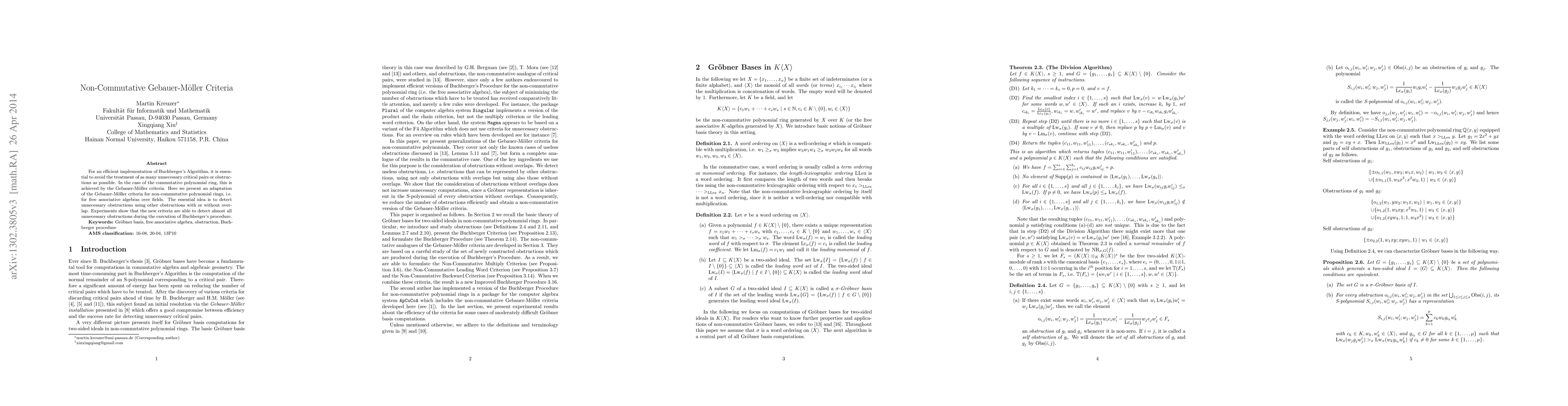 Researchers adapt Gebauer-Moeller criteria for non-commutative polynomial rings to improve efficiency in Buchberger's Algorithm, detecting almost all unnecessary obstructions with high accuracy.