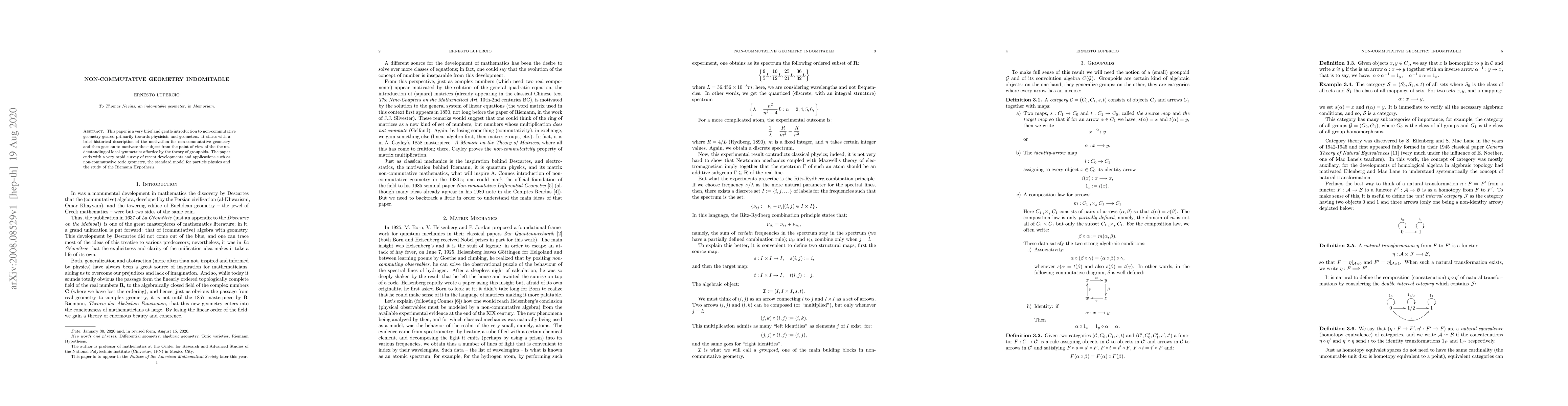 This paper provides a gentle introduction to non-commutative geometry for physicists and geometers, exploring its historical motivation and its role in understanding local symmetries through groupoids, followed by a brief survey of recent developments and applications.