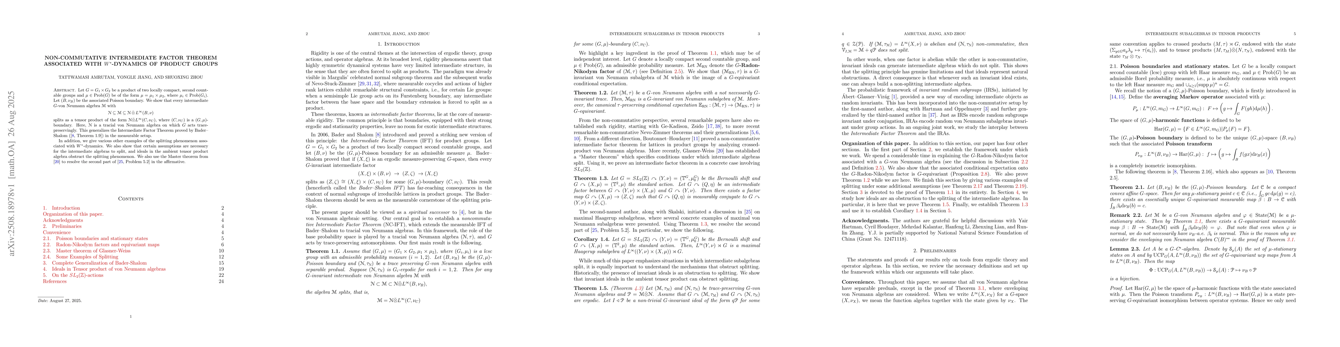 Let $G = G_{1} \times G_{2}$ be a product of two locally compact, second countable groups and $\mu \in \mathrm{Prob}(G)$ be of the form $\mu = \mu_{1} \times \mu_{2}$, where $\mu_{i} \in \mathrm{Prob}(G_{i})$. Let $(B,\nu_B)$ be the associated Poisson boundary. We show that every intermediate $G$-von Neumann algebra $\mathcal{M}$ with \[ \mathcal{N} \subseteq \mathcal{M} \subseteq \mathcal{N} \,\bar{\otimes}\, L^{\infty}(B,\nu) \] splits as a tensor product of the form $\mathcal{N}\bar{\otimes}L^{\infty}(C,\nu_C)$, where $(C,\nu_C)$ is a $(G,\mu)$-boundary. Here, $\mathcal{N}$ is a tracial von Neumann algebra on which $G$ acts trace-preservingly. This generalizes the Intermediate Factor Theorem proved by Bader--Shalom (\cite[Theorem~1.9]{BS06}) in the measurable setup. In addition, we give various other examples of the splitting phenomenon associated with $W^{*}$-dynamics. We also show that certain assumptions are necessary for the intermediate algebras to split, and ideals in the ambient tensor product algebra obstruct the splitting phenomenon. We also use the Master theorem from \cite{glasner2023intermediate} to resolve the second part of \cite[Problem~5.2]{jiangskalski} in the affirmative.