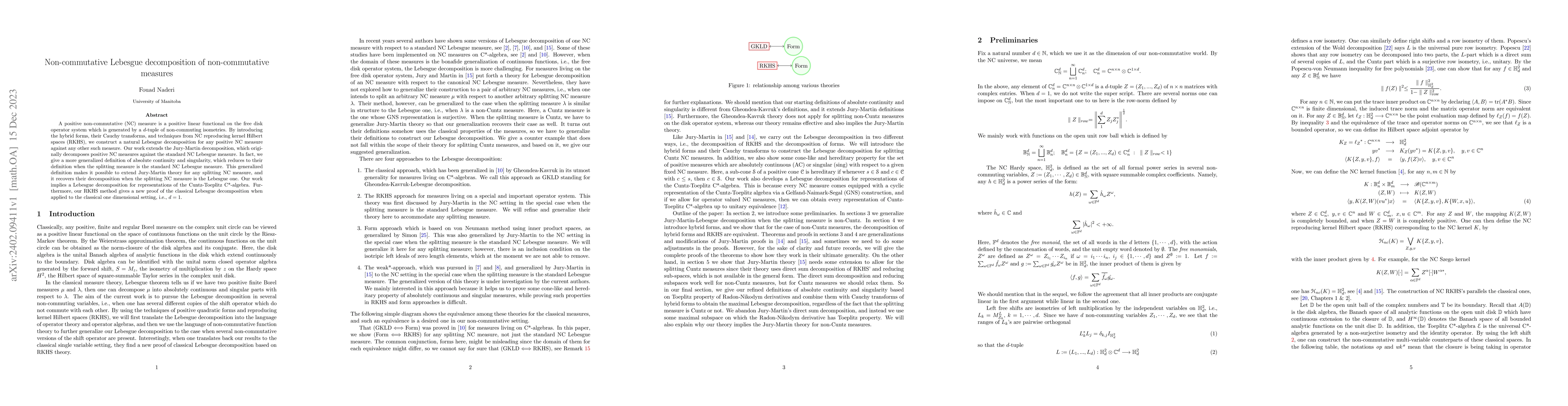 A positive non-commutative (NC) measure is a positive linear functional on the free disk operator system which is generated by a $d$-tuple of non-commuting isometries. By introducing the hybrid forms, their Cauchy transforms, and techniques from NC reproducing kernel Hilbert spaces (RKHS), we construct a natural Lebesgue decomposition for any positive NC measure against any other such measure. Our work extends the Jury-Martin decomposition, which originally decomposes positive NC measures against the standard NC Lebesgue measure. In fact, we give a more generalized definition of absolute continuity and singularity, which reduces to their definition when the splitting measure is the standard NC Lebesgue measure. This generalized definition makes it possible to extend Jury-Martin theory for any splitting NC measure, and it recovers their decomposition when the splitting NC measure is the Lebesgue one. Our work implies a Lebesgue decomposition for representations of the Cuntz-Toeplitz C*-algebra. Furthermore, our RKHS method gives a new proof of the classical Lebesgue decomposition when applied to the classical one dimensional setting, i.e., $d=1$.