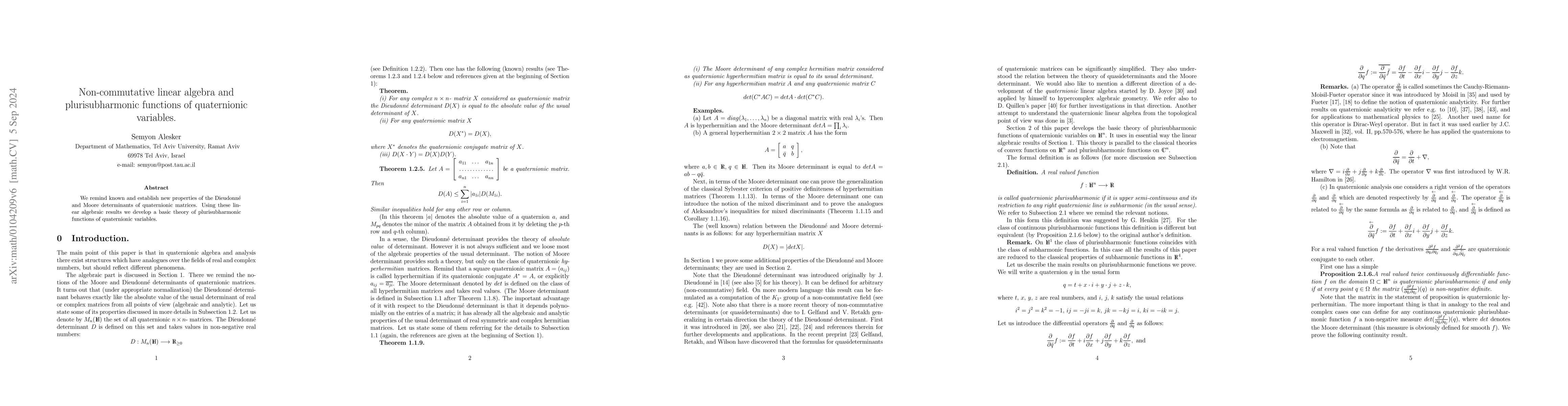 This paper establishes new properties of quaternionic matrices and develops a theory of plurisubharmonic functions, introducing the concept of quaternionic Monge-Ampére equations in a new area of mathematical research.