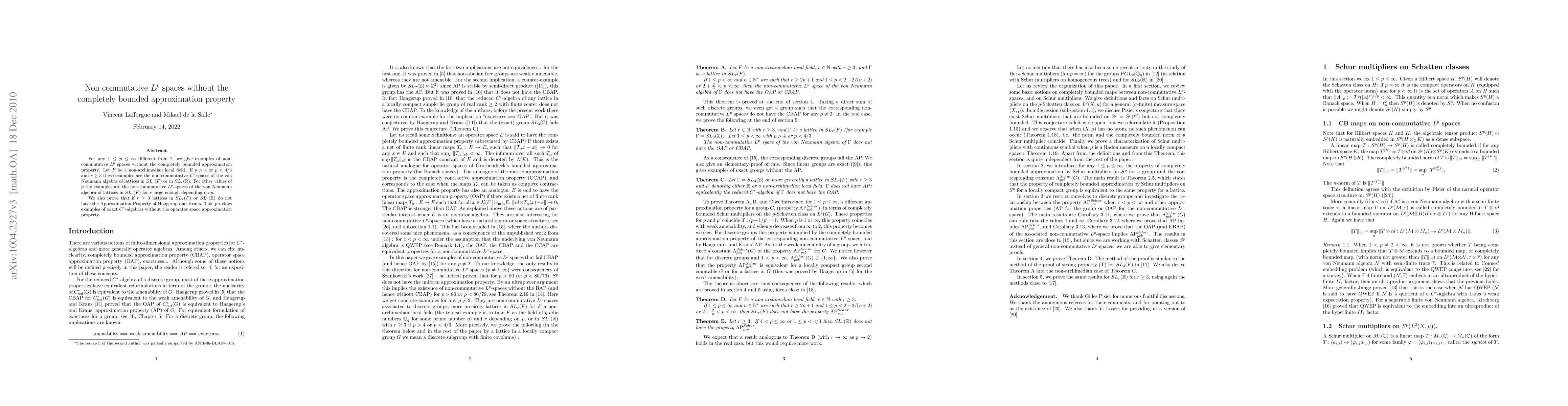 This paper provides examples of non-commutative Lp spaces, for certain values of p, that lack the completely bounded approximation property, using von Neumann algebras of lattices in SL_r(F) or SL_r(R). It also demonstrates that for r ≥ 3, these lattices do not possess the Approximation Property of Haagerup and Kraus.