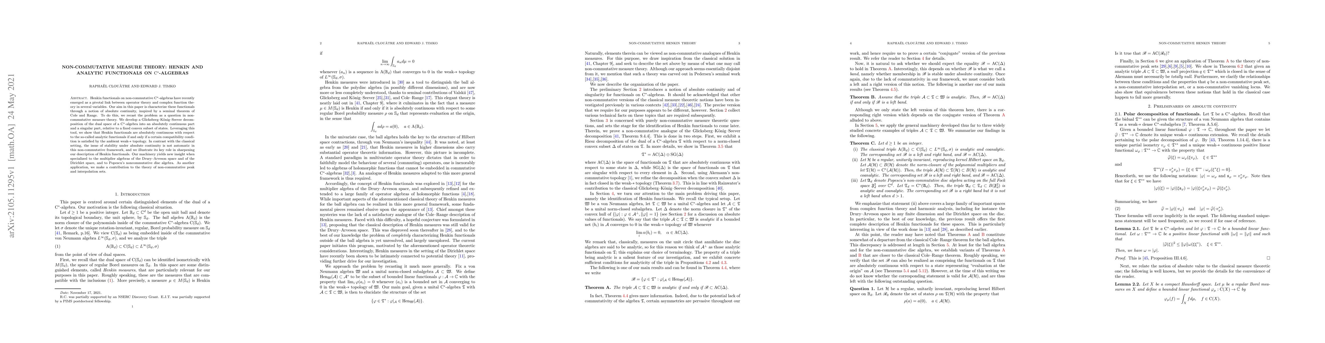Henkin functionals on non-commutative $\mathrm{C}^*$-algebras have recently emerged as a pivotal link between operator theory and complex function theory in several variables. Our aim in this paper is characterize these functionals through a notion of absolute continuity, inspired by a seminal theorem of Cole and Range. To do this, we recast the problem as a question in non-commutative measure theory. We develop a Glicksberg--K\"onig--Seever decomposition of the dual space of a $\mathrm{C}^*$-algebra into an absolutely continuous part and a singular part, relative to a fixed convex subset of states. Leveraging this tool, we show that Henkin functionals are absolutely continuous with respect to the so-called analytic functionals if and only if a certain compatibility condition is satisfied by the ambient weak-$*$ topology. In contrast with the classical setting, the issue of stability under absolute continuity is not automatic in this non-commutative framework, and we illustrate its key role in sharpening our description of Henkin functionals. Our machinery yields new insight when specialized to the multiplier algebras of the Drury--Arveson space and of the Dirichlet space, and to Popescu's noncommutative disc algebra. As another application, we make a contribution to the theory of non-commutative peak and interpolation sets.