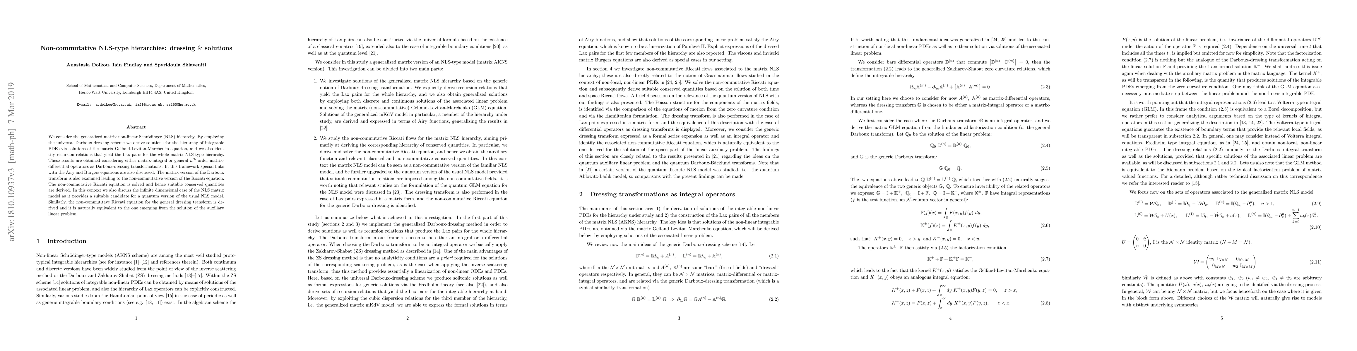 This paper explores the generalized matrix non-linear Schrödinger (NLS) hierarchy, deriving solutions using the universal Darboux-dressing scheme and identifying recursion relations. It also discusses connections to the Airy and Burgers equations, and examines the matrix version of the Darboux transform leading to a non-commutative Riccati equation, which is solved to derive conserved quantities.