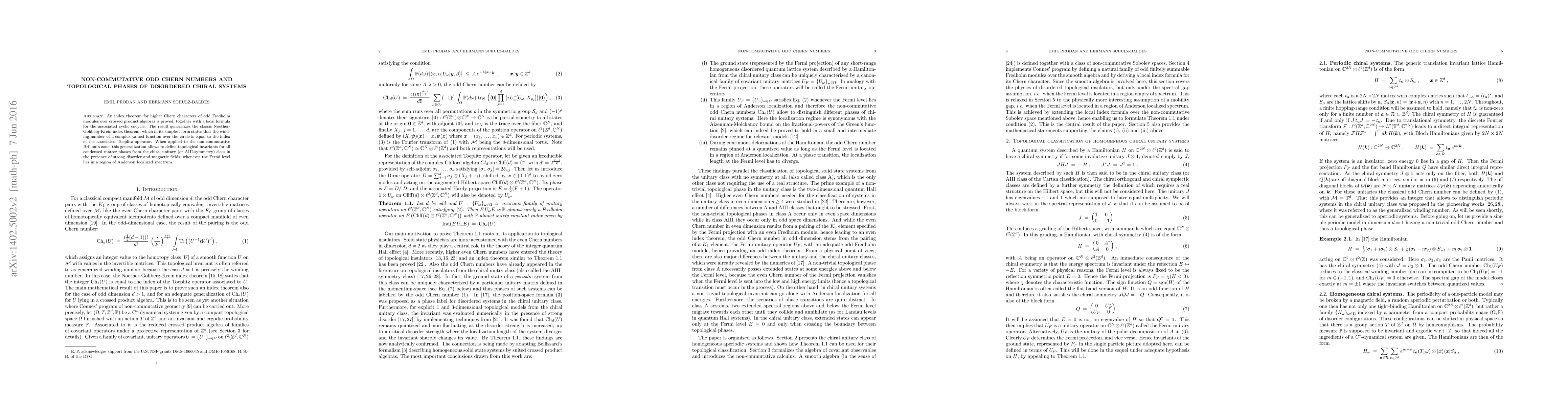 An odd index theorem for higher odd Chern characters of crossed product algebras is proved. It generalizes the Noether-Gohberg-Krein index theorem. Furthermore, a local formula for the associated cyclic cocycle is provided. When applied to the non-commutative Brillouin zone, this allows to define topological invariants for condensed matter phases from the chiral unitary (or AIII-symmetry) class in the presence of strong disorder and magnetic fields whenever the Fermi level lies in region of Anderson localization.