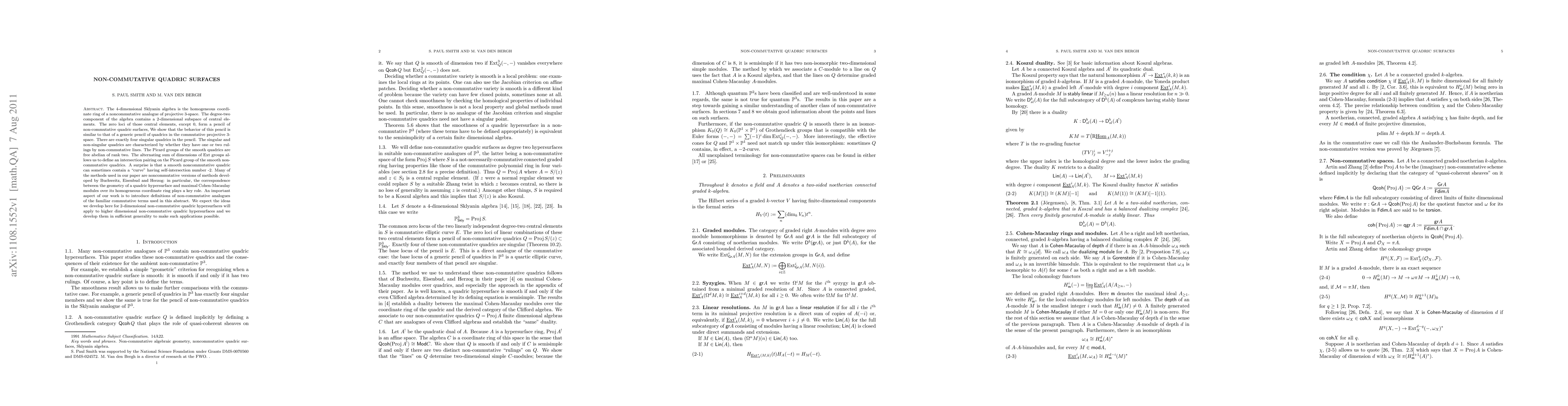 The paper employs algebraic geometry techniques, specifically focusing on non-commutative quadric surfaces, which are studied through the lens of Sklyanin algebras. It utilizes the homogeneous coordinate ring of a noncommutative analog of projective 3-space and examines central elements and their zero loci.