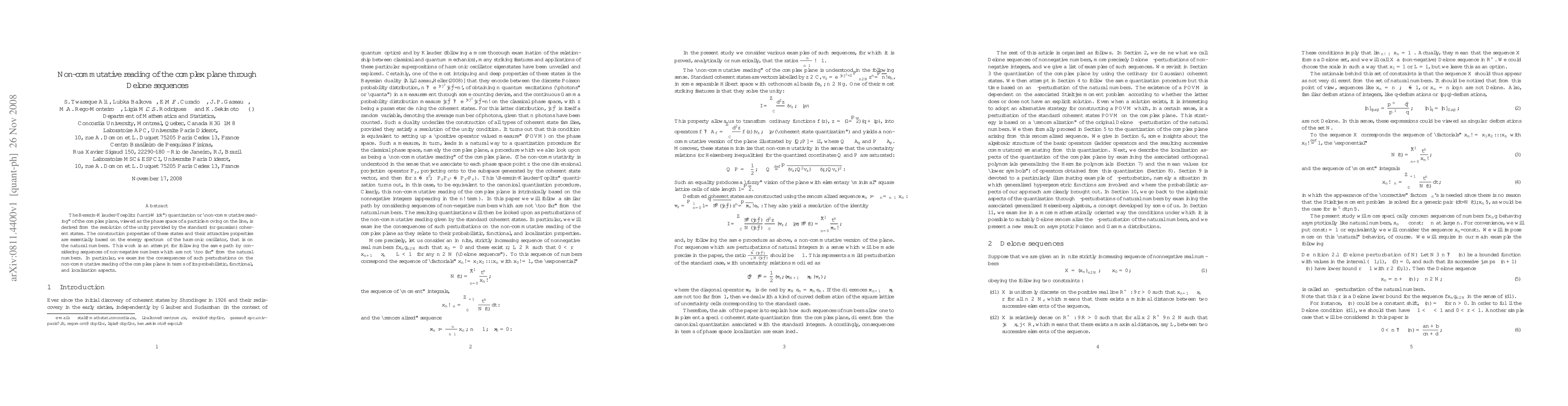 Researchers derived a non-commutative reading of the complex plane using Delone sequences, which deviate from natural numbers but still capture its probabilistic and localization aspects.