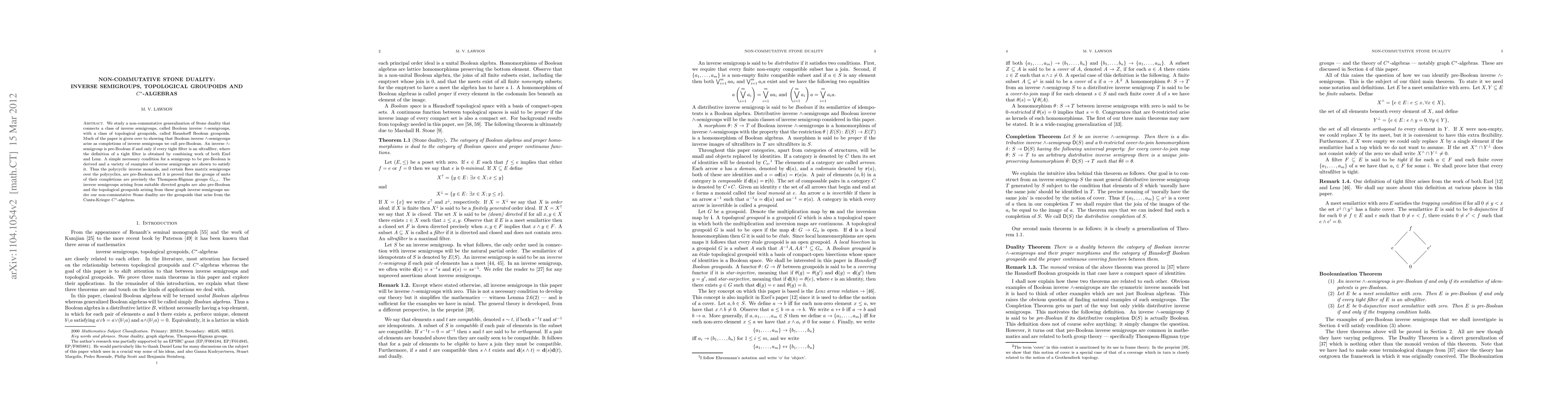 We study a non-commutative generalization of Stone duality that connects a class of inverse semigroups, called Boolean inverse $\wedge$-semigroups, with a class of topological groupoids, called Hausdorff Boolean groupoids. Much of the paper is given over to showing that Boolean inverse $\wedge$-semigroups arise as completions of inverse semigroups we call pre-Boolean. An inverse $\wedge$-semigroup is pre-Boolean if and only if every tight filter is an ultrafilter, where the definition of a tight filter is obtained by combining work of both Exel and Lenz. A simple necessary condition for a semigroup to be pre-Boolean is derived and a variety of examples of inverse semigroups are shown to satisfy it. Thus the polycyclic inverse monoids, and certain Rees matrix semigroups over the polycyclics, are pre-Boolean and it is proved that the groups of units of their completions are precisely the Thompson-Higman groups $G_{n,r}$. The inverse semigroups arising from suitable directed graphs are also pre-Boolean and the topological groupoids arising from these graph inverse semigroups under our non-commutative Stone duality are the groupoids that arise from the Cuntz-Krieger $C^{\ast}$-algebras.