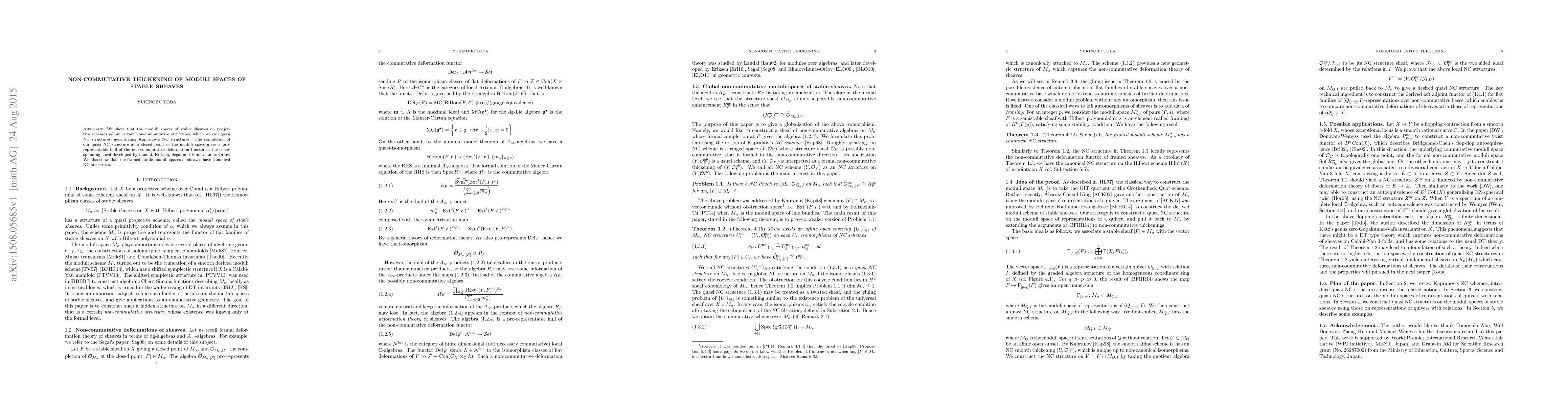 Summary: This paper introduces quasi NC structures on moduli spaces of stable sheaves, generalizing Kapranov's NC structures, and demonstrates their completion forms a pro-representable hull for the non-commutative deformation functor of the sheaves, alongside establishing canonical NC structures on framed stable moduli spaces.
