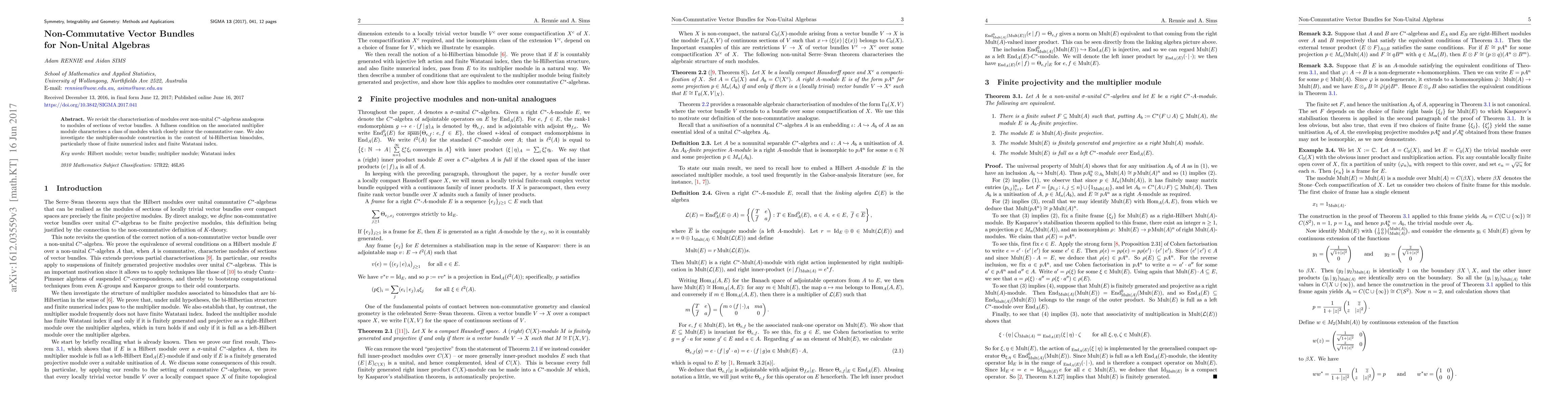 We revisit the characterisation of modules over non-unital $C^*$-algebras analogous to modules of sections of vector bundles. A fullness condition on the associated multiplier module characterises a class of modules which closely mirror the commutative case. We also investigate the multiplier-module construction in the context of bi-Hilbertian bimodules, particularly those of finite numerical index and finite Watatani index.