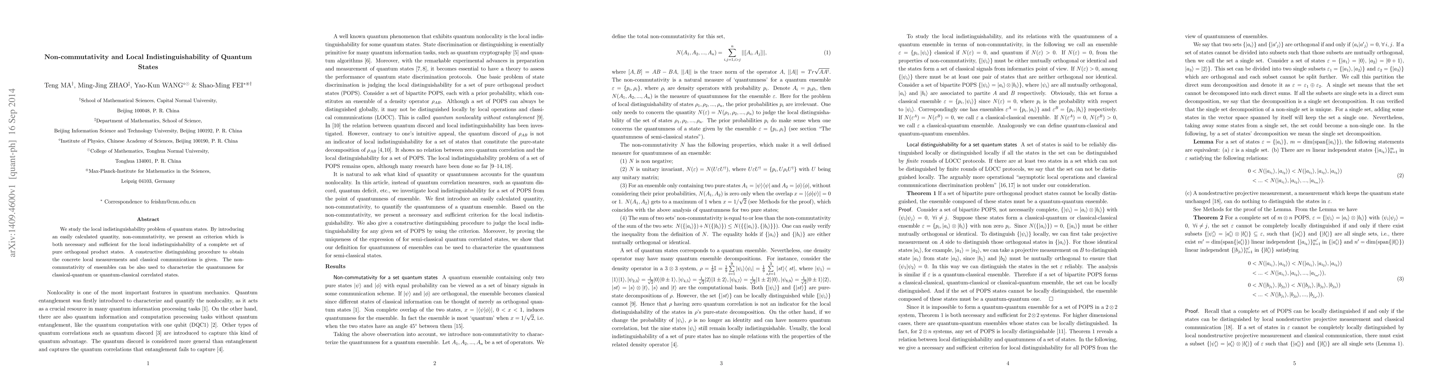 This paper introduces a criterion based on non-commutativity to determine the local indistinguishability of quantum states, providing a necessary and sufficient condition for a complete set of pure orthogonal product states. It also outlines a procedure for concrete local measurements and classical communications.