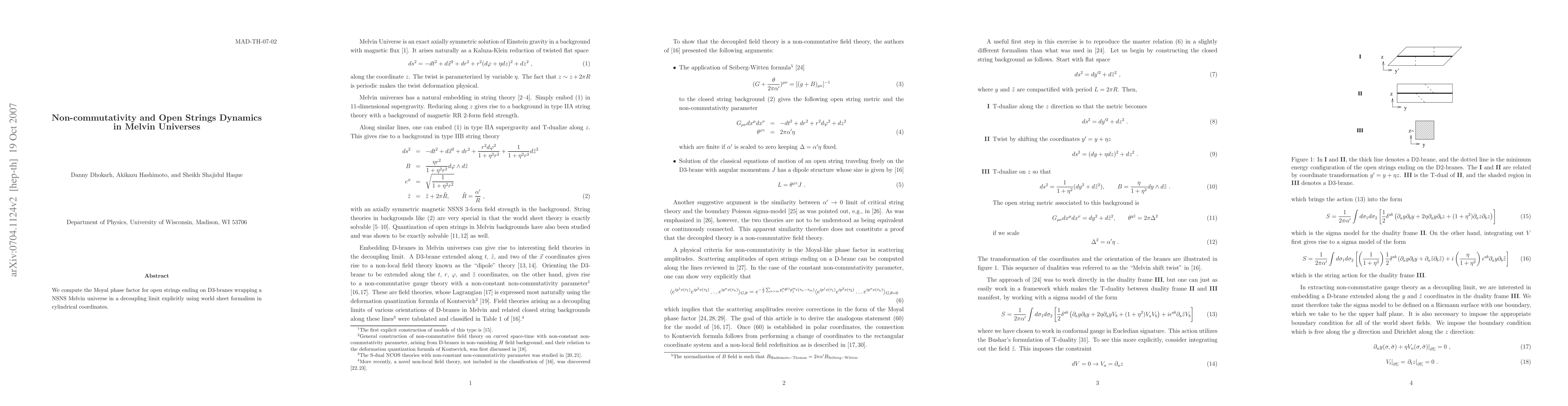 Summary: This paper calculates the Moyal phase factor for open strings on D3-branes in a decoupled NSNS Melvin universe, employing world sheet formalism in cylindrical coordinates to analyze the non-commutative dynamics. The study provides insights into the string dynamics in such non-trivial spacetime configurations.