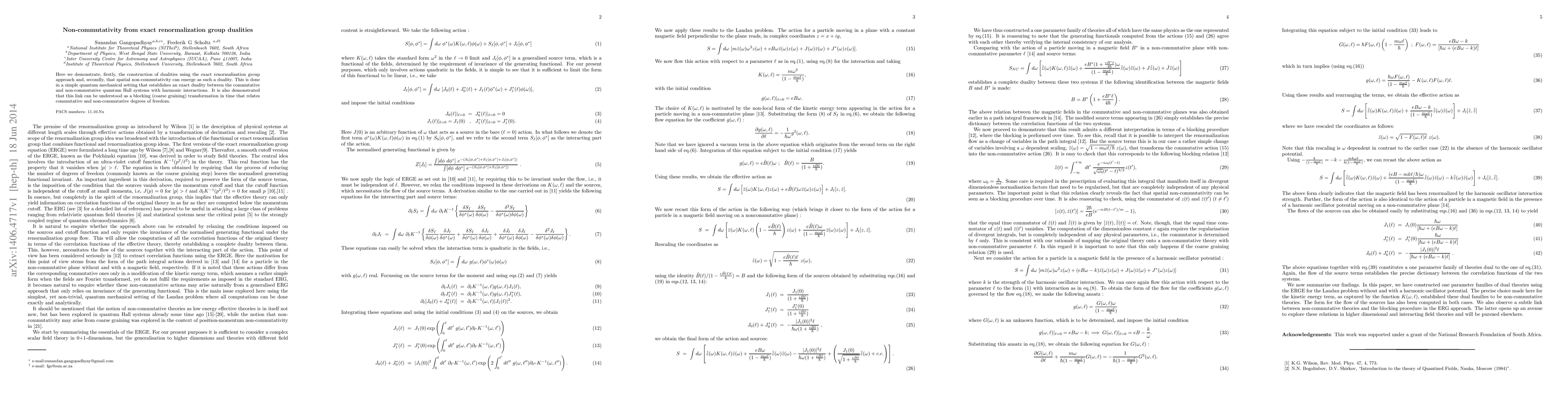 Here we demonstrate, firstly, the construction of dualities using the exact renormalization group approach and, secondly, that spatial non-commutativity can emerge as such a duality. This is done in a simple quantum mechanical setting that establishes an exact duality between the commutative and non-commutative quantum Hall systems with harmonic interactions. It is also demonstrated that this link can be understood as a blocking (coarse graining) transformation in time that relates commutative and non-commutative degrees of freedom.