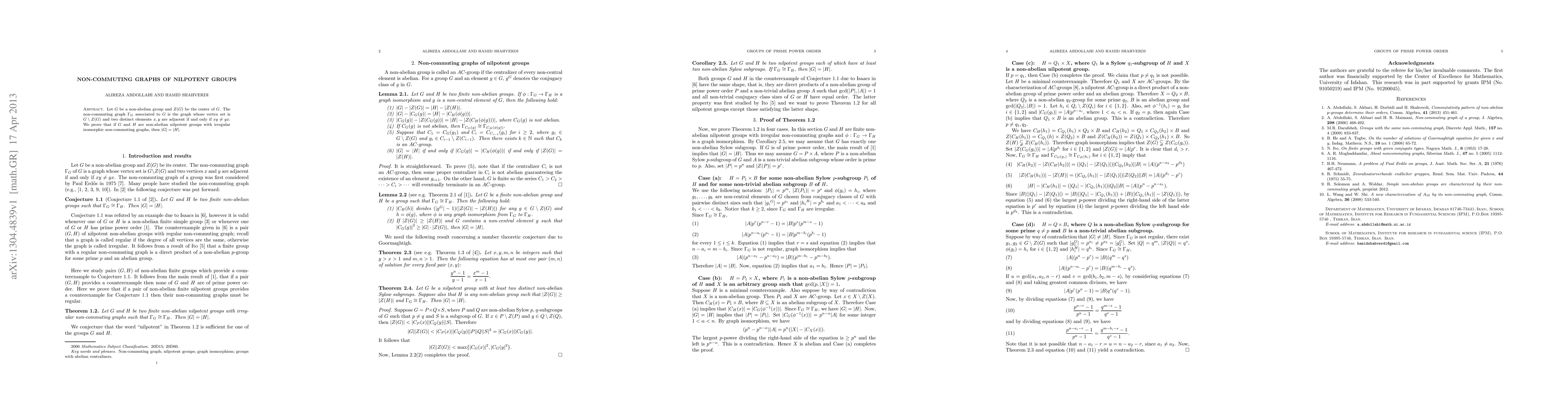 This paper investigates the non-commuting graphs of non-abelian nilpotent groups, proving that if two such groups have isomorphic but irregular non-commuting graphs, their orders must be equal.