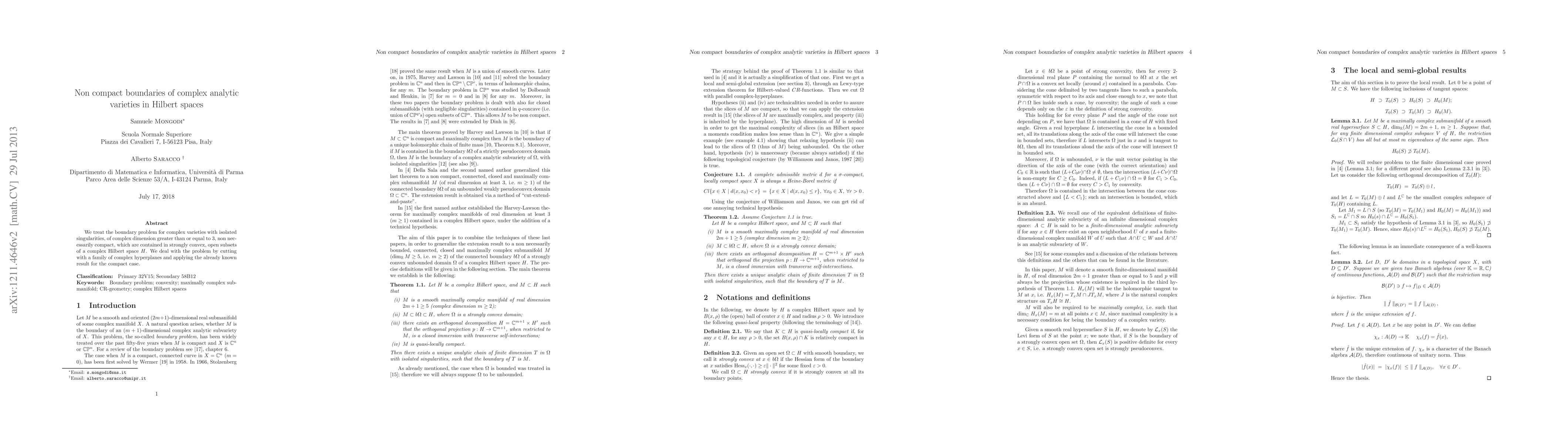 Researchers solved a boundary problem for complex varieties with isolated singularities in Hilbert spaces, focusing on non-compact cases and applying a novel hyperplane-cutting method.