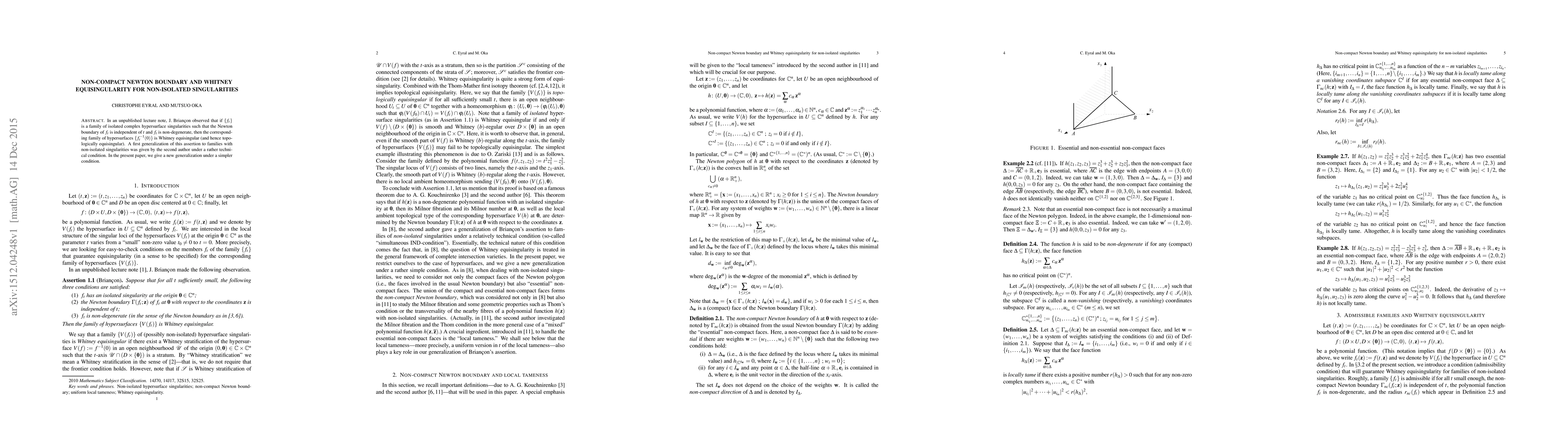 This paper generalizes Briançon's observation on Whitney equisingularity for families of complex hypersurface singularities, extending the result to cases with non-isolated singularities under a simpler condition than previous work.