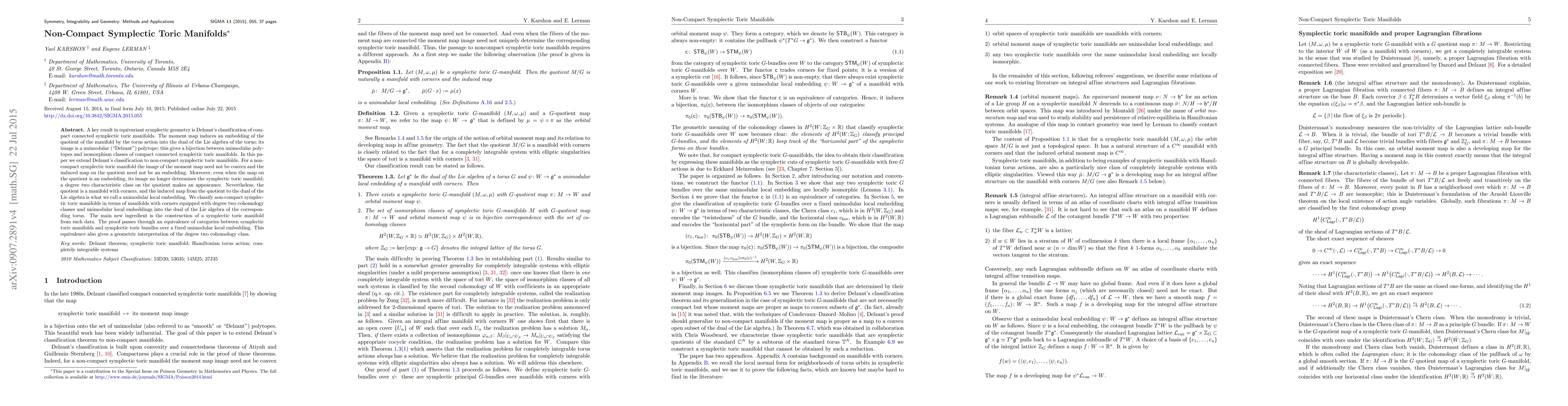 A key result in equivariant symplectic geometry is Delzant's classification of compact connected symplectic toric manifolds. The moment map induces an embedding of the quotient of the manifold by the torus action into the dual of the Lie algebra of the torus; its image is a unimodular ("Delzant") polytope; this gives a bijection between unimodular polytopes and isomorphism classes of compact connected symplectic toric manifolds. In this paper we extend Delzant's classification to non-compact symplectic toric manifolds. For a non-compact symplectic toric manifold the image of the moment map need not be convex and the induced map on the quotient need not be an embedding. Moreover, even when the map on the quotient is an embedding, its image no longer determines the symplectic toric manifold; a degree two characteristic class on the quotient makes an appearance. Nevertheless, the quotient is a manifold with corners, and the induced map from the quotient to the dual of the Lie algebra is what we call a unimodular local embedding. We classify non-compact symplectic toric manifolds in terms of manifolds with corners equipped with degree two cohomology classes and unimodular local embeddings into the dual of the Lie algebra of the corresponding torus. The main new ingredient is the construction of a symplectic toric manifold from such data. The proof passes through an equivalence of categories between symplectic toric manifolds and symplectic toric bundles over a fixed unimodular local embedding. This equivalence also gives a geometric interpretation of the degree two cohomology class.