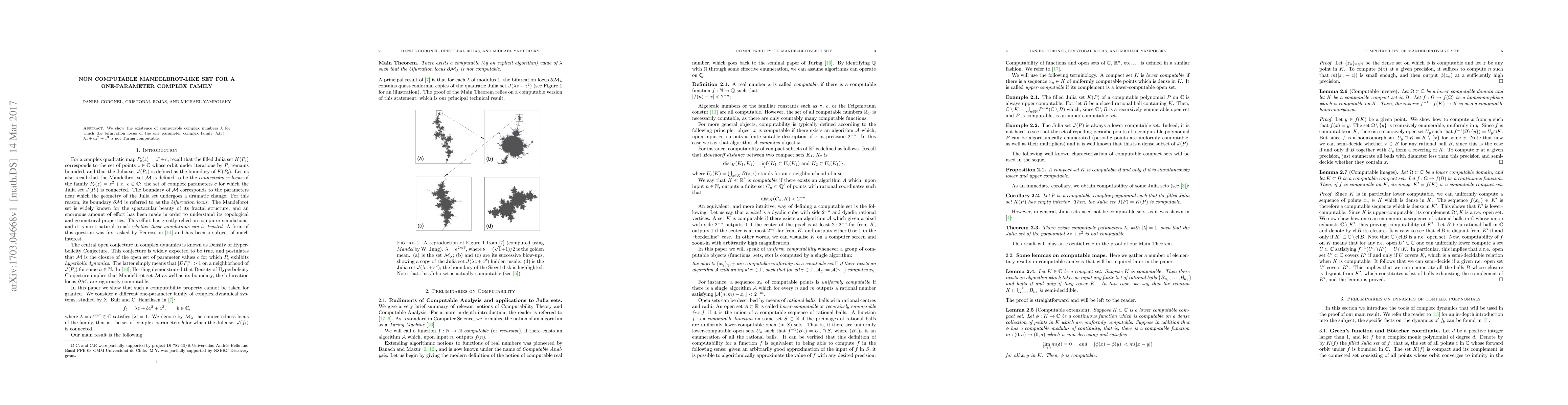 The paper demonstrates that there exist computable complex numbers $\lambda$ where the bifurcation locus of the complex family $f_{b}(z) = \lambda z + b z^{2} + z^{3}$ cannot be computed by a Turing machine, indicating a non-computable Mandelbrot-like set.