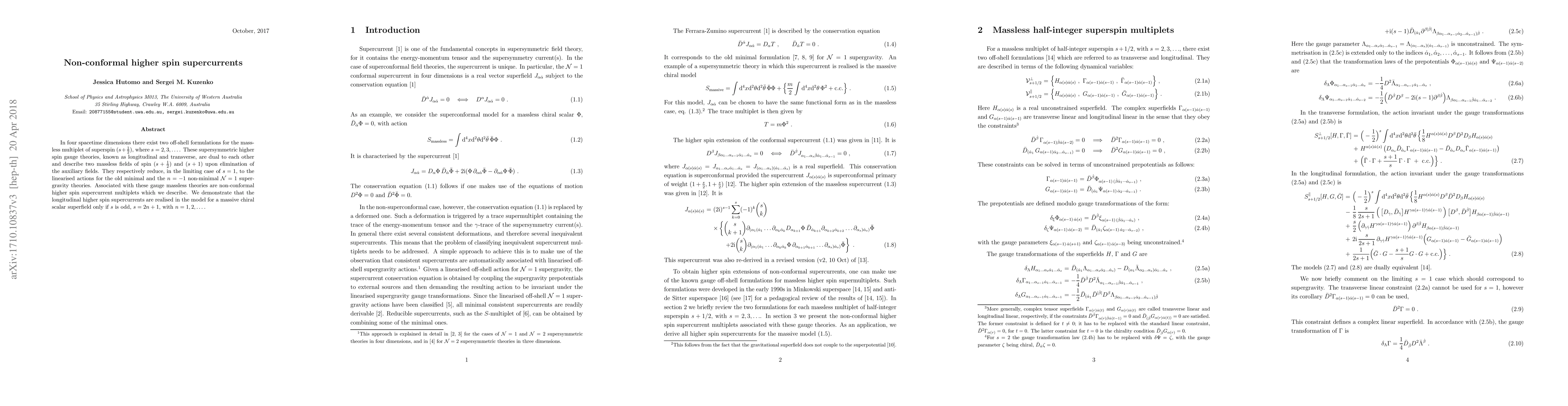 In four spacetime dimensions there exist two off-shell formulations for the massless multiplet of superspin $(s+\frac 12)$, where $s=2,3, \dots$. These supersymmetric higher spin gauge theories, known as longitudinal and transverse, are dual to each other and describe two massless fields of spin $(s+\frac 12)$ and $(s+1)$ upon elimination of the auxiliary fields. They respectively reduce, in the limiting case of $s=1$, to the linearised actions for the old minimal and the $n=-1$ non-minimal ${\cal N}=1$ supergravity theories. Associated with these gauge massless theories are non-conformal higher spin supercurrent multiplets which we describe. We demonstrate that the longitudinal higher spin supercurrents are realised in the model for a massive chiral scalar superfield only if $s$ is odd, $s=2n+1$, with $n= 1,2, \dots$.