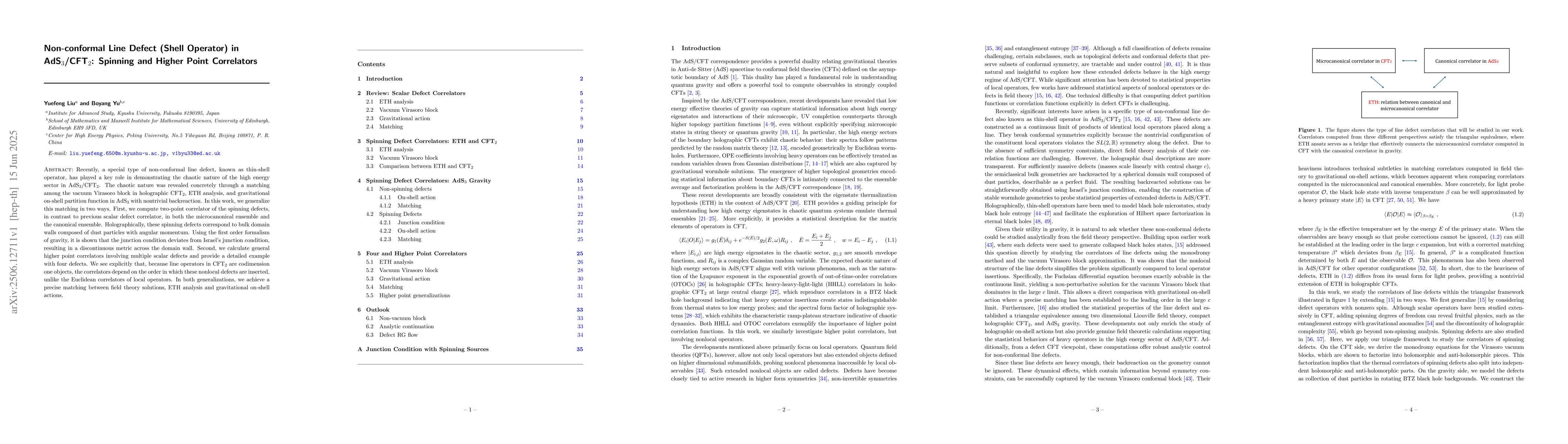 Recently, a special type of non-conformal line defect, known as thin-shell operator, has played a key role in demonstrating the chaotic nature of the high energy sector in AdS$_3$/CFT$_2$. The chaotic nature was revealed concretely through a matching among the vacuum Virasoro block in holographic CFT$_2$, ETH analysis, and gravitational on-shell partition function in AdS$_3$ with nontrivial backreaction. In this work, we generalize this matching in two ways. First, we compute two-point correlator of the spinning defects, in contrast to previous scalar defect correlator, in both the microcanonical ensemble and the canonical ensemble. Holographically, these spinning defects correspond to bulk domain walls composed of dust particles with angular momentum. Using the first order formalism of gravity, it is shown that the junction condition deviates from Israel's junction condition, resulting in a discontinuous metric across the domain wall. Second, we calculate general higher point correlators involving multiple scalar defects and provide a detailed example with four defects. We see explicitly that, because line operators in CFT$_2$ are codimension one objects, the correlators depend on the order in which these nonlocal defects are inserted, unlike the Euclidean correlators of local operators. In both generalizations, we achieve a precise matching between field theory solutions, ETH analysis and gravitational on-shell actions.