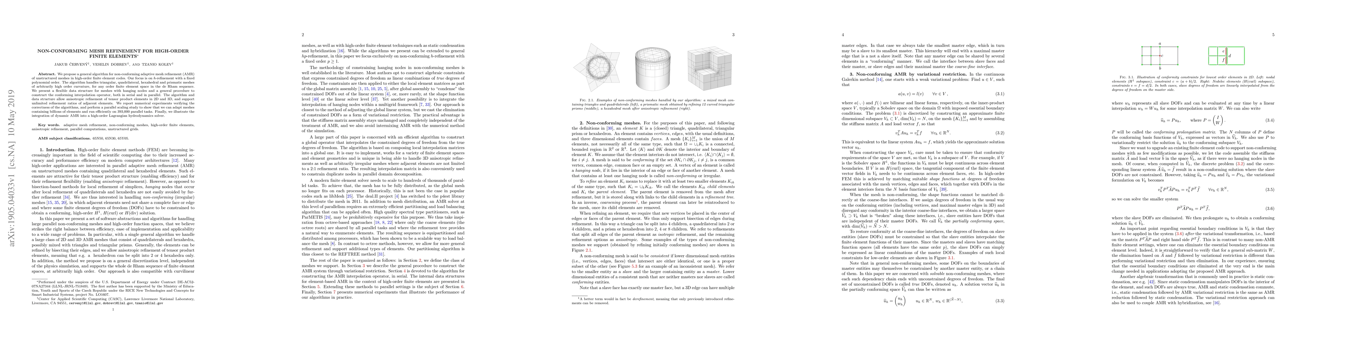 This paper introduces an adaptive mesh refinement algorithm for high-order finite elements, supporting non-conforming unstructured meshes and anisotropic refinement. It demonstrates efficient parallel scaling and integration into a high-order hydrodynamics solver.