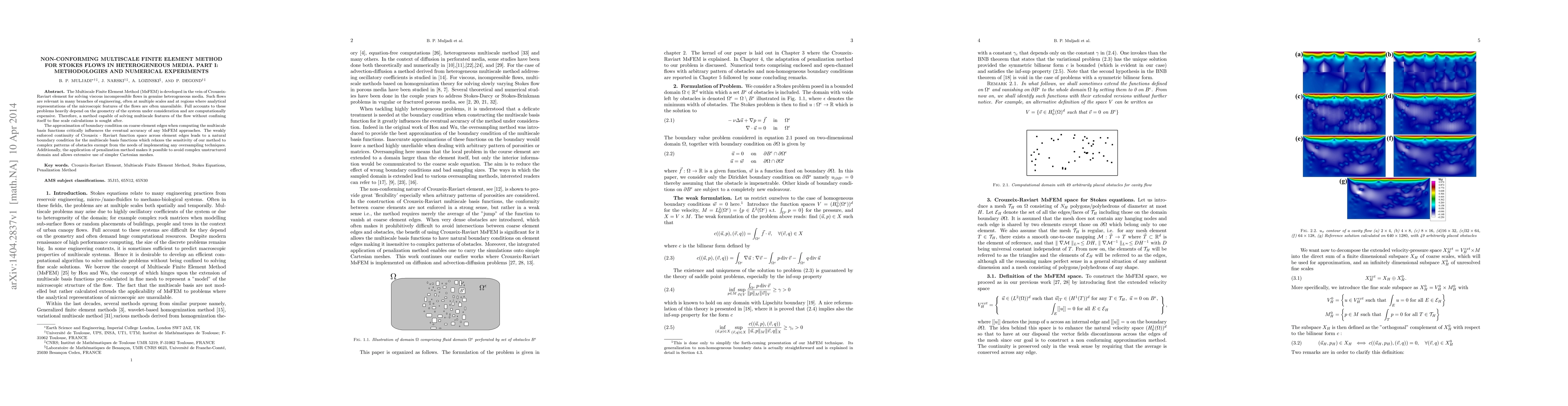 This paper introduces a Non-Conforming Multiscale Finite Element Method (MsFEM) based on Crouzeix-Raviart elements for solving Stokes flows in heterogeneous media. The method effectively handles multiscale features without relying on fine-scale calculations, leveraging weakly enforced boundary conditions and penalization to simplify complex geometries.
