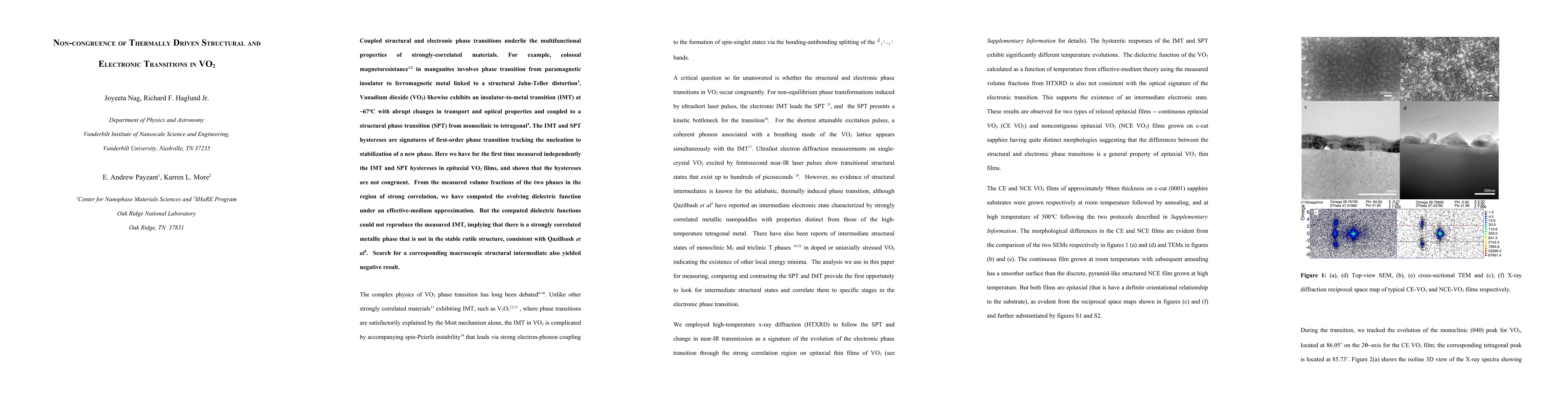 Researchers have found that the insulator-to-metal transition in VO2 is accompanied by a structural phase transition with non-congruent hystereses, suggesting a new metallic phase not in the stable rutile structure.