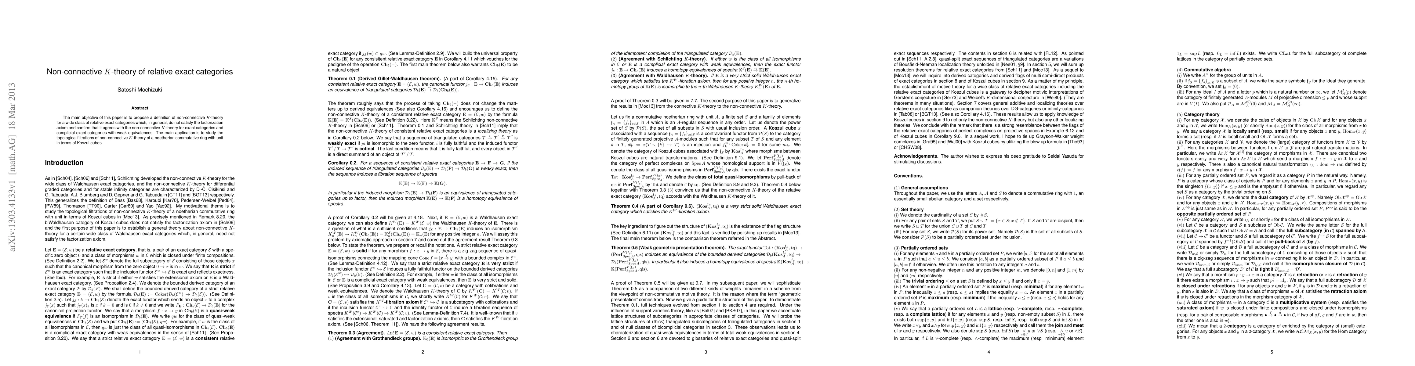 This paper introduces non-connective K-theory for a broad class of relative exact categories and demonstrates its consistency with existing theories. It applies this theory to analyze topological filtrations of non-connective K-theory in the context of noetherian commutative rings using Koszul cubes.