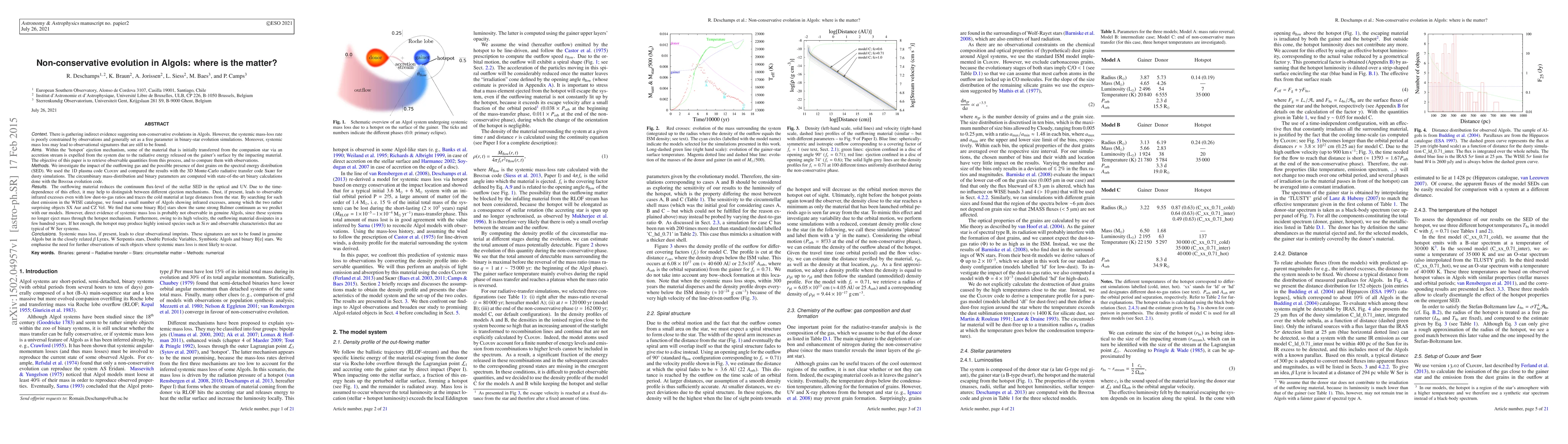 There is gathering indirect evidence suggesting non-conservative evolutions in Algols. However, the systemic mass-loss rate is poorly constrained by observations and generally set as a free parameter in binary-star evolution simulations. Moreover, systemic mass loss may lead to observational signatures that are still to be found. We investigate the impact of the outflowing gas and the possible presence of dust grains on the spectral energy distribution (SED). We used the 1D plasma code Cloudy and compared the results with the 3D Monte-Carlo radiative transfer code Skirt for dusty simulations. The circumbinary mass-distribution and binary parameters are computed with state-of-the-art binary calculations done with the Binstar evolution code. The outflowing material reduces the continuum flux-level of the stellar SED in the optical and UV. Due to the time-dependence of this effect, it may help to distinguish between different ejection mechanisms. Dust, if present, leads to observable infrared excesses even with low dust-to-gas ratios and traces the cold material at large distances from the star. By searching for such dust emission in the WISE catalogue, we found a small number of Algols showing infrared excesses, among which the two rather surprising objects SX Aur and CZ Vel. We find that some binary B[e] stars show the same strong Balmer continuum as we predict with our models. However, direct evidence of systemic mass loss is probably not observable in genuine Algols, since these systems no longer eject mass through the hotspot mechanism. Furthermore, owing to its high velocity, the outflowing material dissipates in a few hundred years. If hot enough, the hotspot may produce highly ionised species such as SiIV and observable characteristics that are typical of W Ser systems.