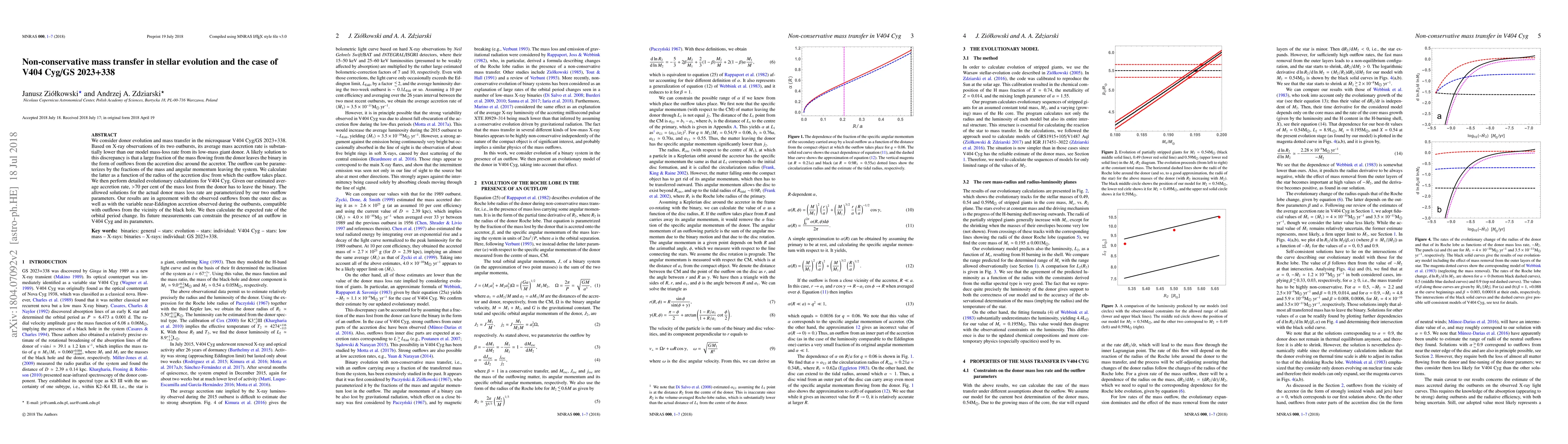We consider donor evolution and mass transfer in the microquasar V404 Cyg/GS 2023+338. Based on X-ray observations of its two outbursts, its average mass accretion rate is substantially lower than our model mass-loss rate from its low-mass giant donor. A likely solution to this discrepancy is that a large fraction of the mass flowing from the donor leaves the binary in the form of outflows from the accretion disc around the accretor. The outflow can be parameterizes by the fractions of the mass and angular momentum leaving the system. We calculate the latter as a function of the radius of the accretion disc from which the outflow takes place. We then perform detailed evolutionary calculations for V404 Cyg. Given our estimated average accretion rate, $>$70 per cent of the mass lost from the donor has to leave the binary. The allowed solutions for the actual donor mass loss rate are parameterized by our two outflow parameters. Our results are in agreement with the observed outflows from the outer disc as well as with the variable near-Eddington accretion observed during the outbursts, compatible with outflows from the vicinity of the black hole. We then calculate the expected rate of the orbital period change. Its future measurements can constrain the presence of an outflow in V404 Cyg and its parameters.