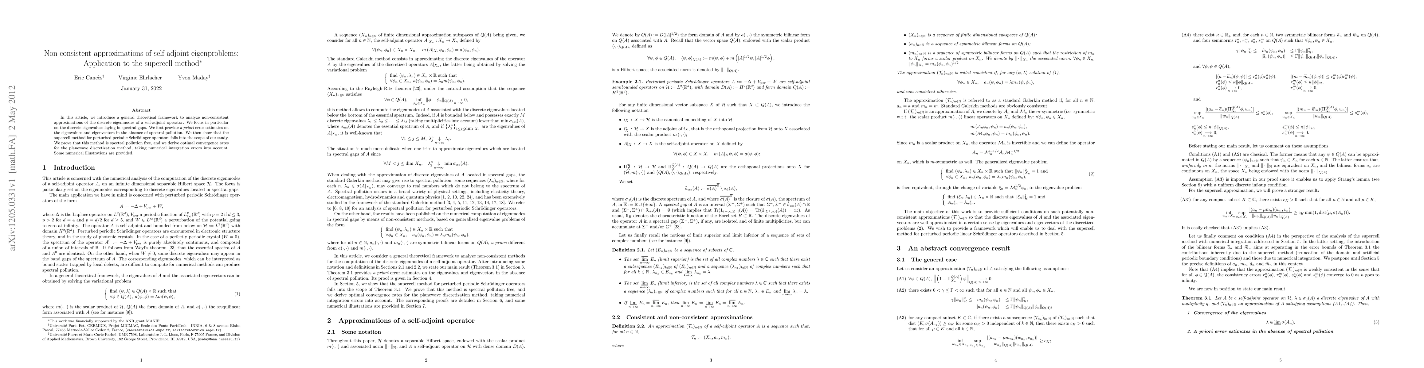 In this article, we introduce a general theoretical framework to analyze non-consistent approximations of the discrete eigenmodes of a self-adjoint operator. We focus in particular on the discrete eigenvalues laying in spectral gaps. We first provide a priori error estimates on the eigenvalues and eigenvectors in the absence of spectral pollution. We then show that the supercell method for perturbed periodic Schr\"odinger operators falls into the scope of our study. We prove that this method is spectral pollution free, and we derive optimal convergence rates for the planewave discretization method, taking numerical integration errors into account. Some numerical illustrations are provided.