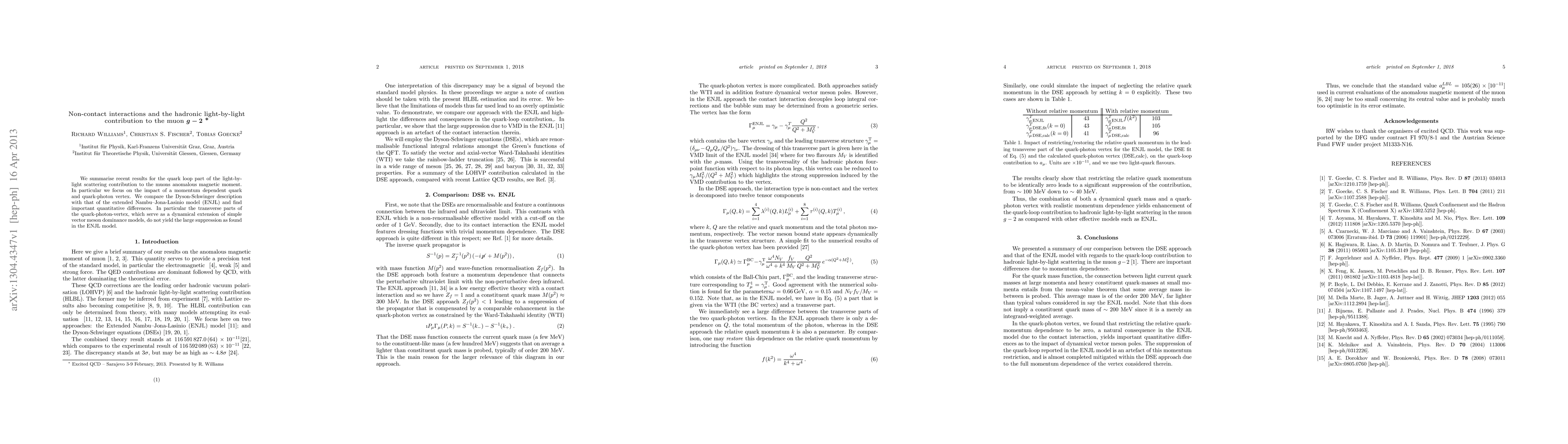 We summarise recent results for the quark loop part of the light-by-light scattering contribution to the muons anomalous magnetic moment. In particular we focus on the impact of a momentum dependent quark and quark-photon vertex. We compare the Dyson-Schwinger description with that of the extended Nambu--Jona-Lasinio model (ENJL) and find important quantitative differences. In particular the transverse parts of the quark-photon-vertex, which serve as a dynamical extension of simple vector meson dominance models, do not yield the large suppression as found in the ENJL model.