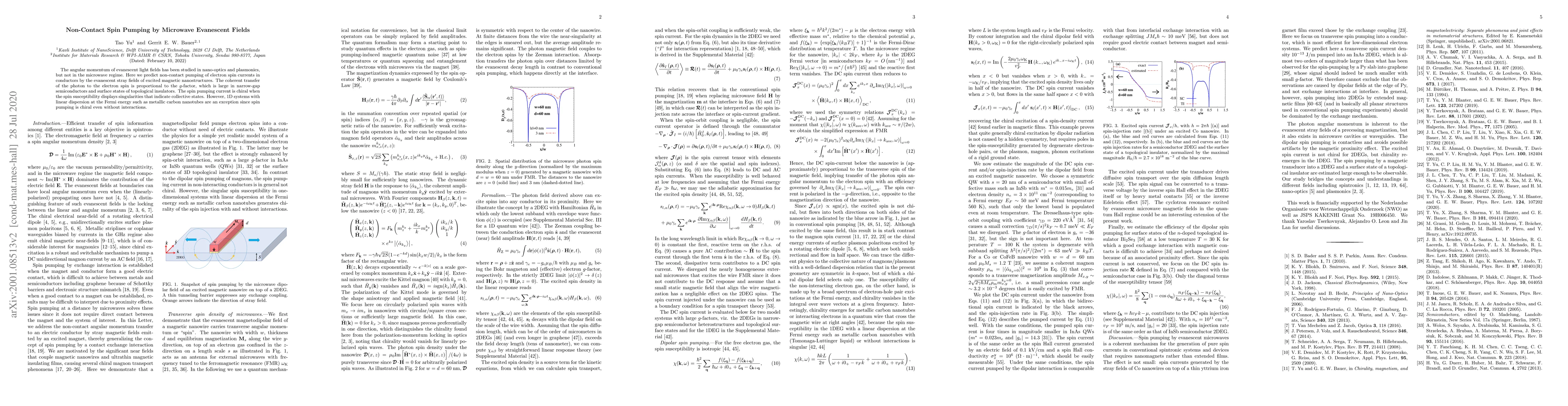 Researchers predict non-contact spin pumping of electron currents in conductors by microwave evanescent fields, with chiral effects observed in some systems.
