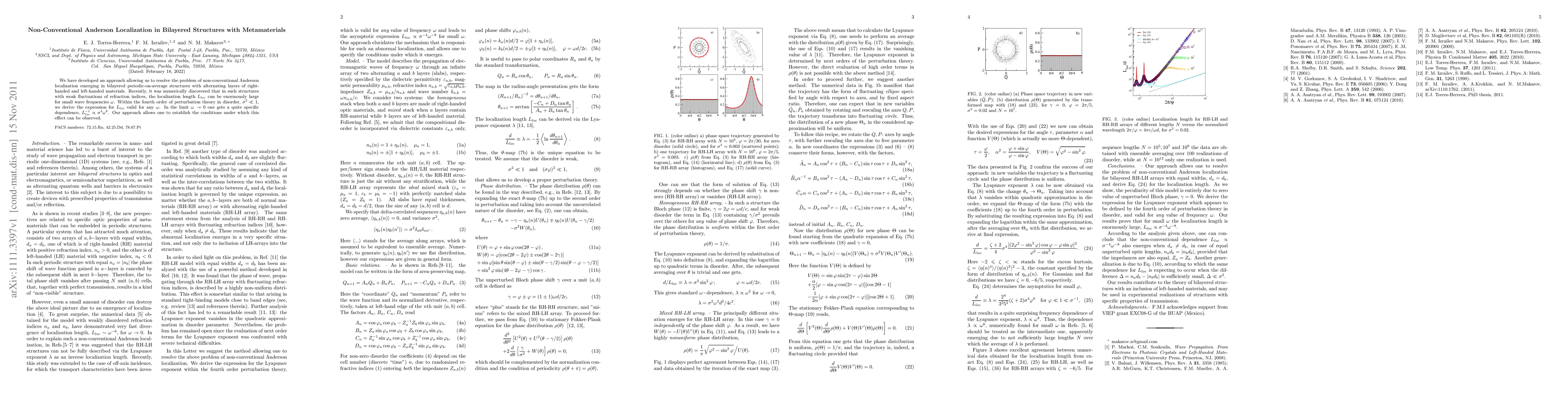 This paper resolves non-conventional Anderson localization in bilayered metamaterial structures, deriving a localization length $L_{loc}$ expression valid for small frequencies $\omega$. The study reveals a unique dependence $L^{-1}_{loc} \propto \sigma^4 \omega^8$ for $\omega \rightarrow 0$ and identifies conditions for observing this effect.