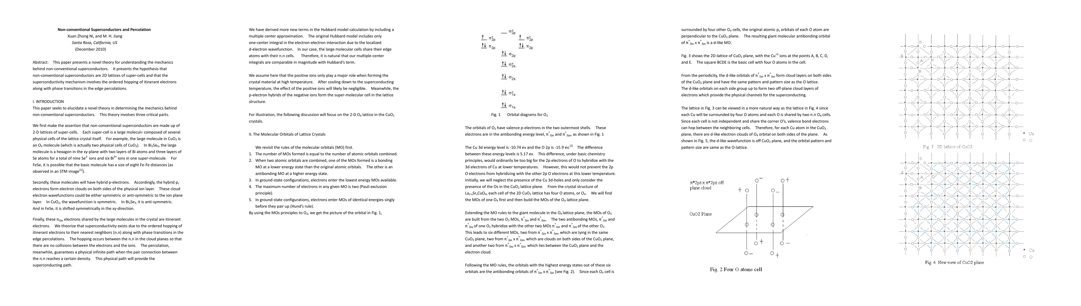 This paper presents a novel theory for understanding the mechanics behind non-conventional superconductors. It presents the hypothesis that non-conventional superconductors are 2D lattices of super-cells and that the superconductivity mechanism involves the ordered hopping of itinerant electrons along with phase transitions in the edge percolations.