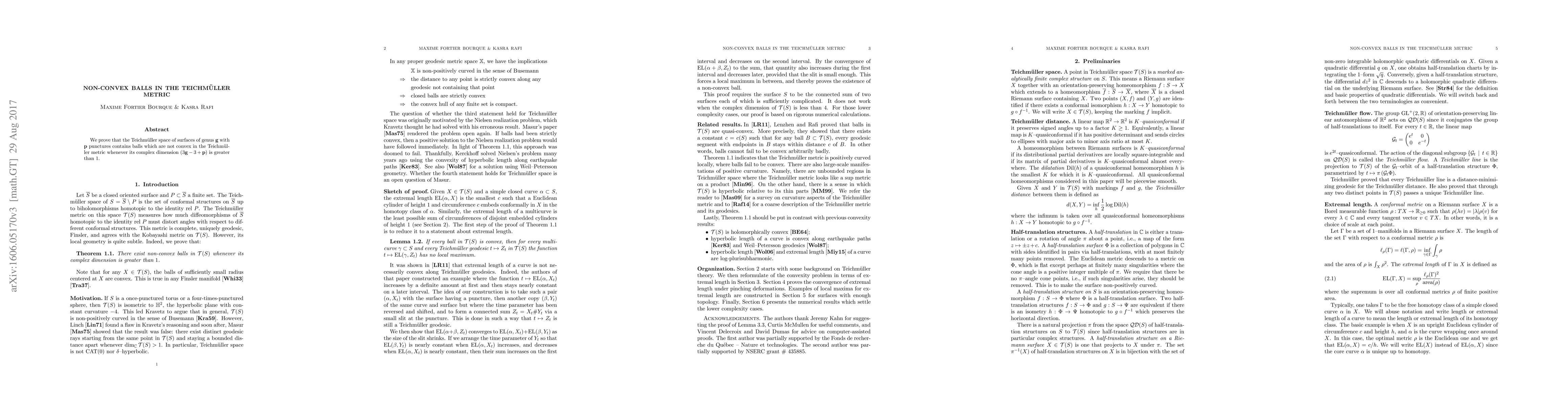 This research proves that in certain surfaces with specific numbers of punctures and genus, Teichm"uller space contains non-convex balls. The condition for this to occur is given by $3 ext{g}-3+ ext{p} > 1$.