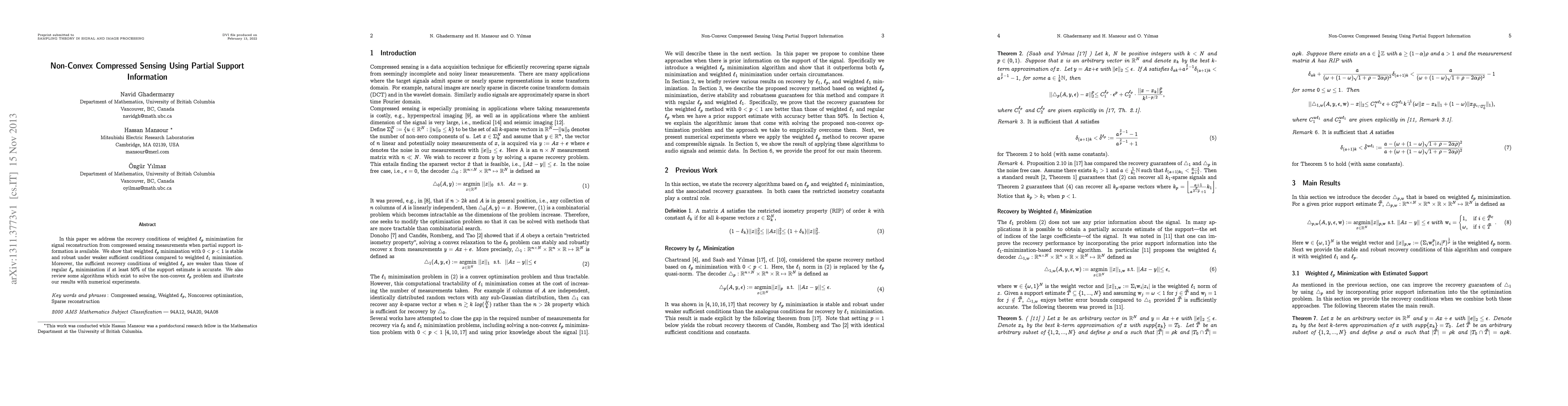 In this paper we address the recovery conditions of weighted $\ell_p$ minimization for signal reconstruction from compressed sensing measurements when partial support information is available. We show that weighted $\ell_p$ minimization with $0