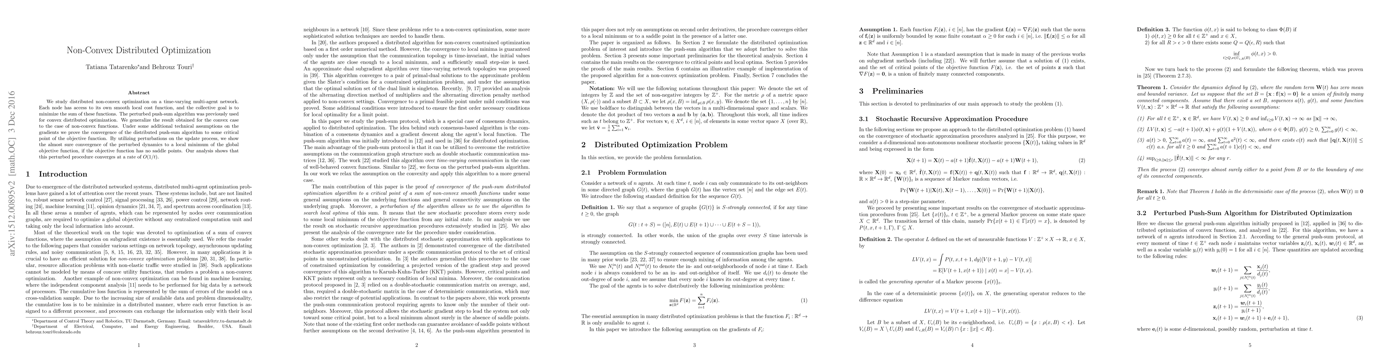 Researchers developed a method for distributed non-convex optimization on multi-agent networks, achieving almost sure convergence to a local minimum with an O(1/t) rate.