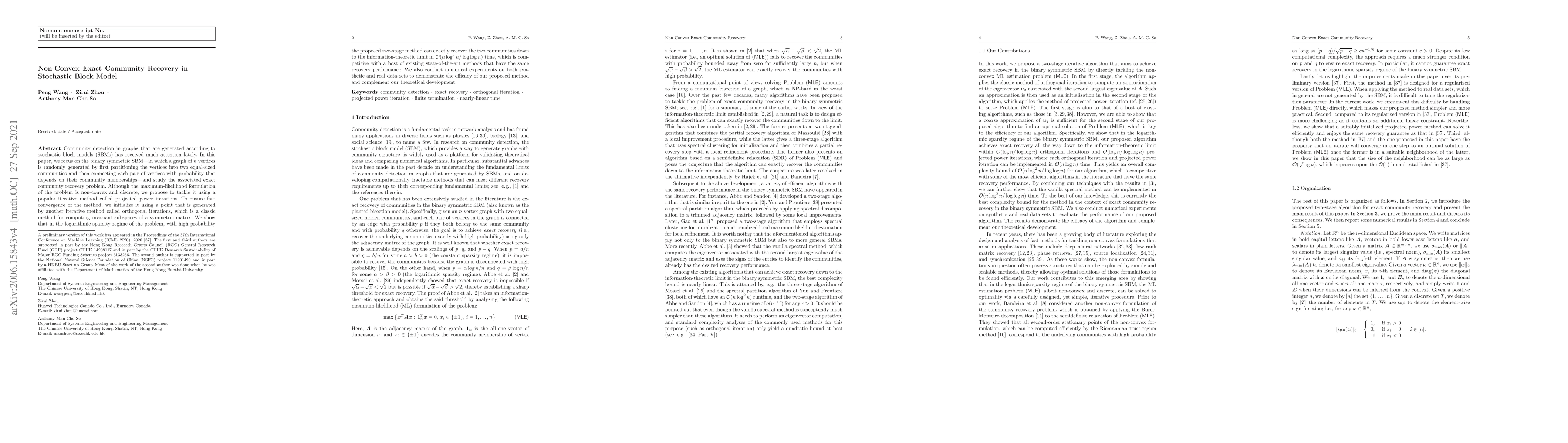 This paper proposes a two-stage method for exact community recovery in binary symmetric stochastic block models, using projected power iterations initialized by orthogonal iterations. It demonstrates that the method can recover communities efficiently and accurately in the logarithmic sparsity regime.